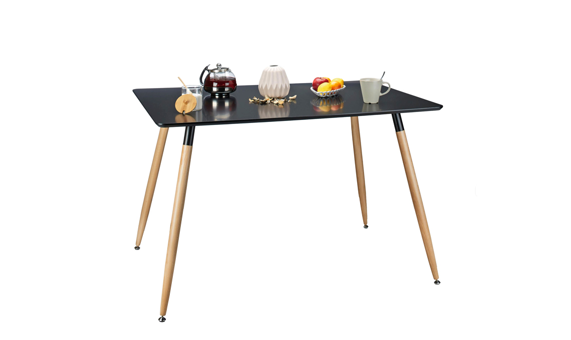 Perfetto in&out. Relaxdays ha il piano in mdf laccato nero opaco, gambe in legno con staffe in metallo e piedini in gomma [Leroy Merlin, cm 120x80x75h]