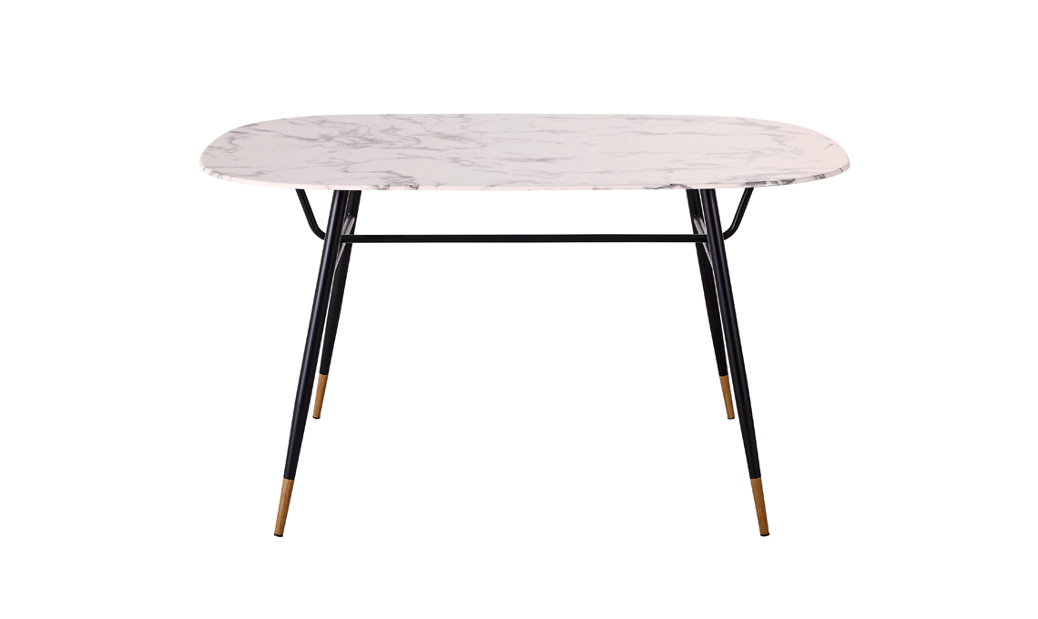 Sembra marmo... Gambe affusolate per Reah, dotato di piano in vetro temprato effetto marmo e finitura verniciata in resina [Maisons du Monde, cm 140x90x76,5h]