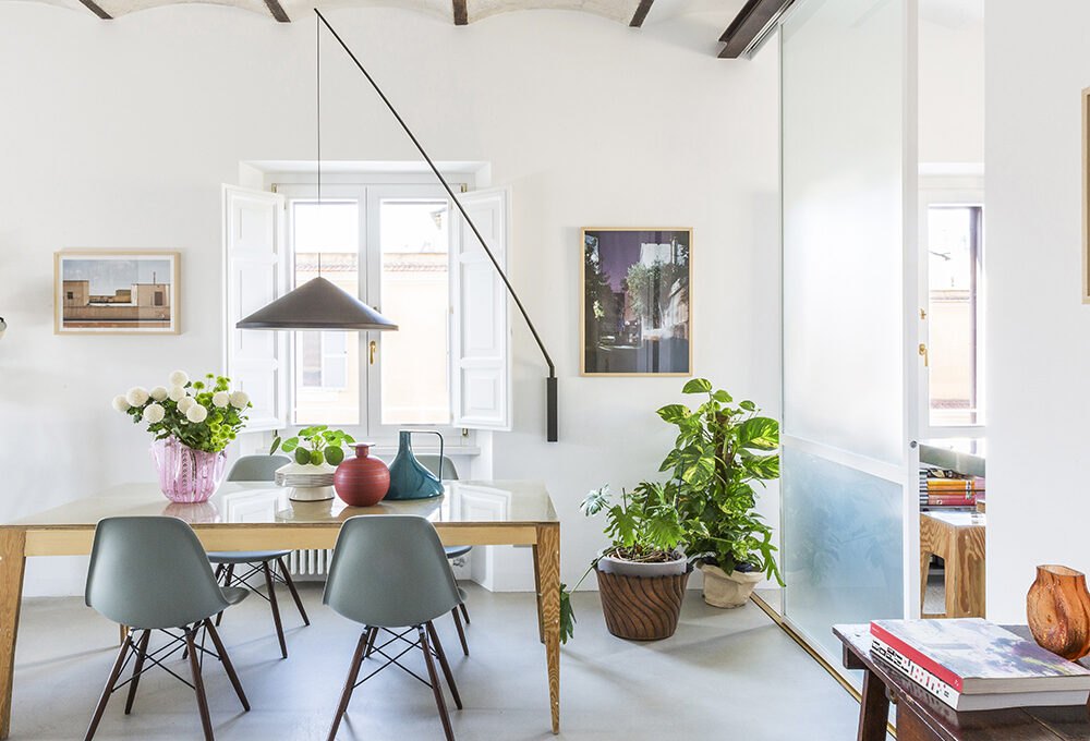 Diffusore in vetro soffiato e acidato per la lampada Alma, a lunghezza regolabile [Ideal Lux, ø cm 49,5x26-235h € 284].