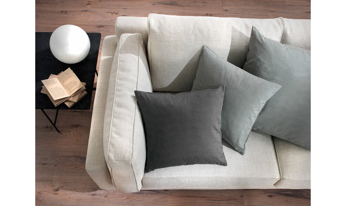 Nella versione outdoor il divano Pixel Light ha telaio in acciaio verniciato resistente alla corrosione e cuscini in speciali strati di tessuto tecnico che, in caso di pioggia, fanno defluire l’acqua [Saba Italia, cm 336x132x67h da € 9.833].