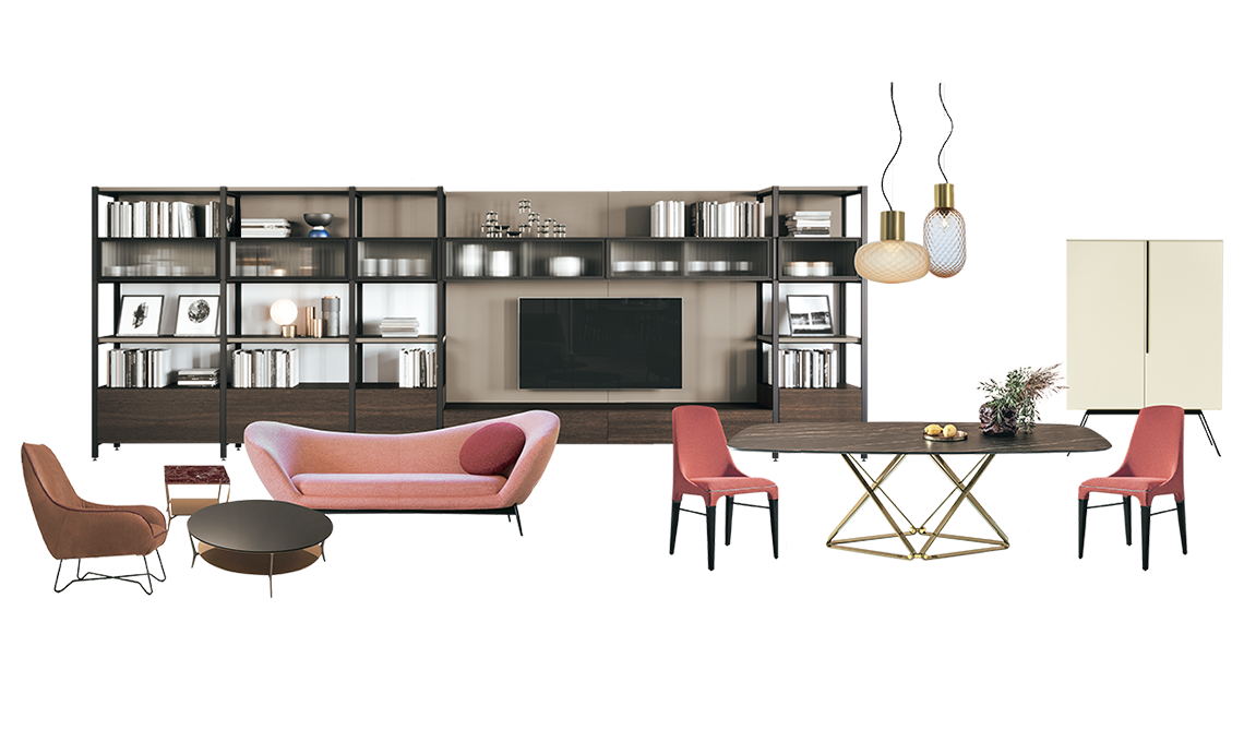 - il divano Oltremare, dalla linea sinuosa e avvolgente, ha struttura e cuscinature a portanza differenziata, che garantiscono massimo comfort [Saba Italia].