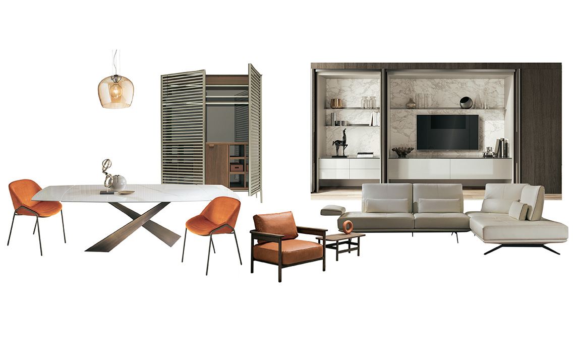 Il mood essenziale dei mobili è riscaldato da materiali ricercati, rivestimenti in toni caldi e finiture effetto bronzo e marmo. Scelte all’insegna di bellezza e praticità!
