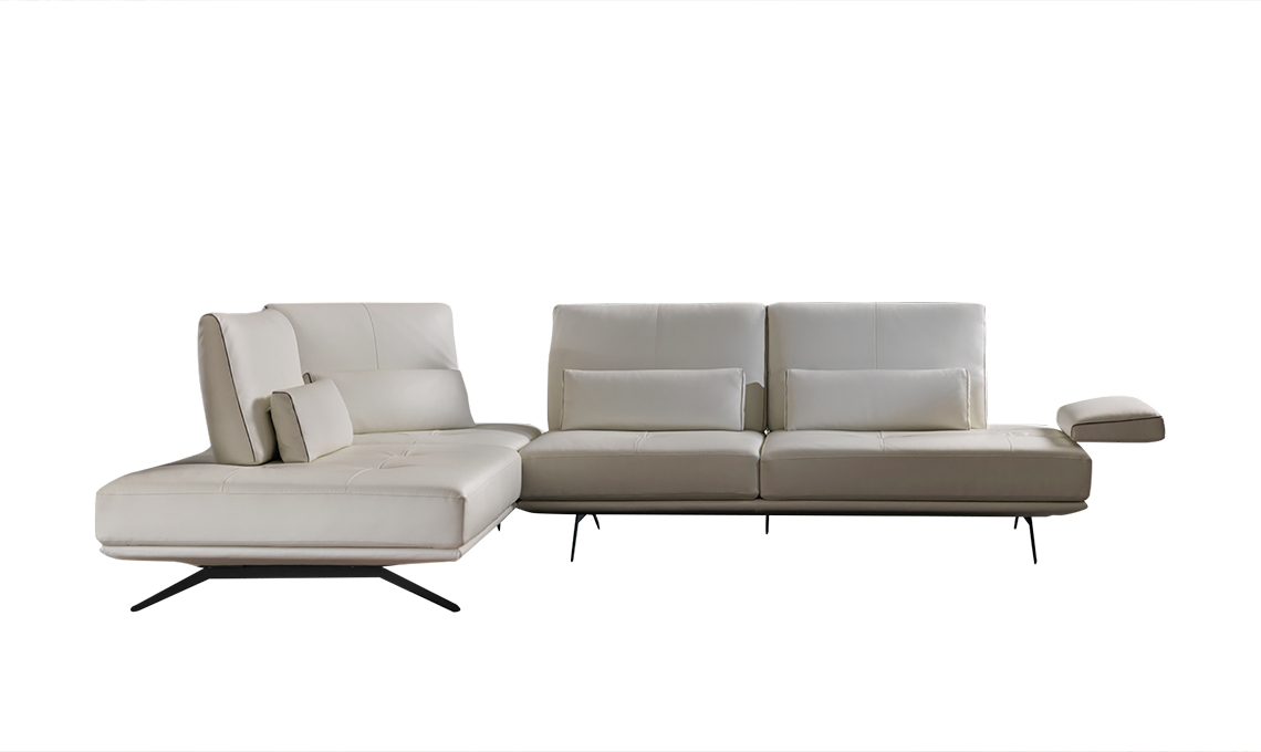 il divano Aladin, dalla seduta superconfortevole, ha gli schienali flessibili e basculanti. Lo componi a piacere. Rivestimento in tessuto o pelle [Franco Ferri].