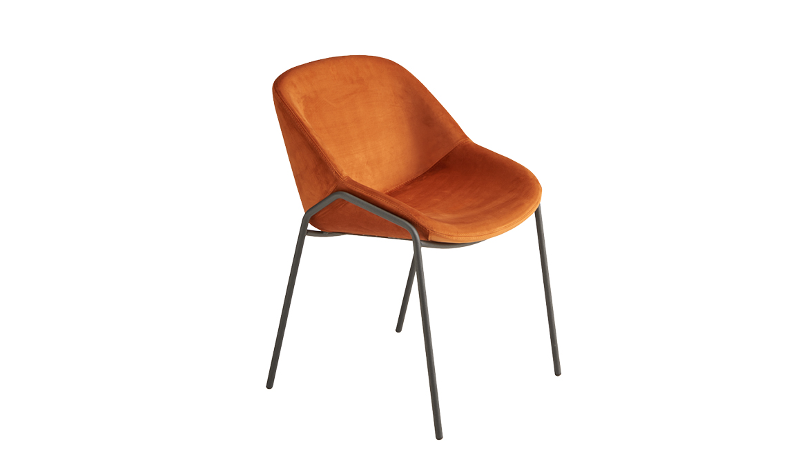 le sedie Nova, con struttura in metallo verniciato grafite, hanno seduta e schienale ergonomici imbottiti e rivestiti in tessuto [Riflessi].