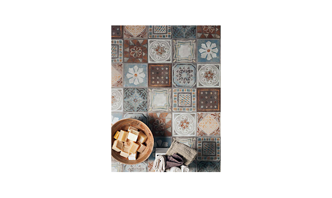 I materiali?Tecnologici con un occhio di riguardo alla tradizione. Sopra, un grès a minimo spessore (fino a 1/3 delle classiche piastrelle) ma super resistente, prodotto con un minore impiego di materie prime ed energia, oltre a un fabbisogno di acqua inferiore dell’80%. Sotto, piastrelle in grès effetto cementina che contengono circa il 40% di caolini, feldspati e argille riciclate.
