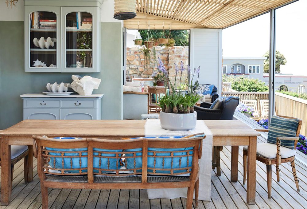 E per quanto riguarda i materiali, scegli un infisso che ti offra il massimo della luce e pavimenti in&out, per una continuità tra interno ed esterno e rivestimenti in legno o effetto pietra.