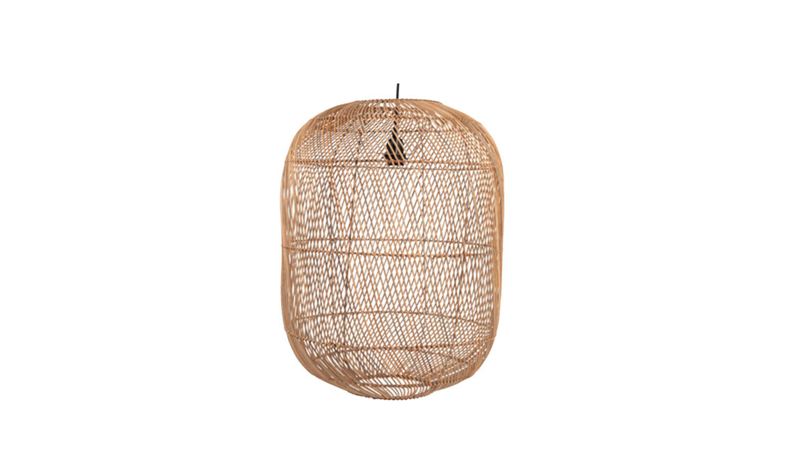 Rattan intrecciato per la lampada a sospensione Loey [Maisons du Monde, ø cm 47x60h € 90].