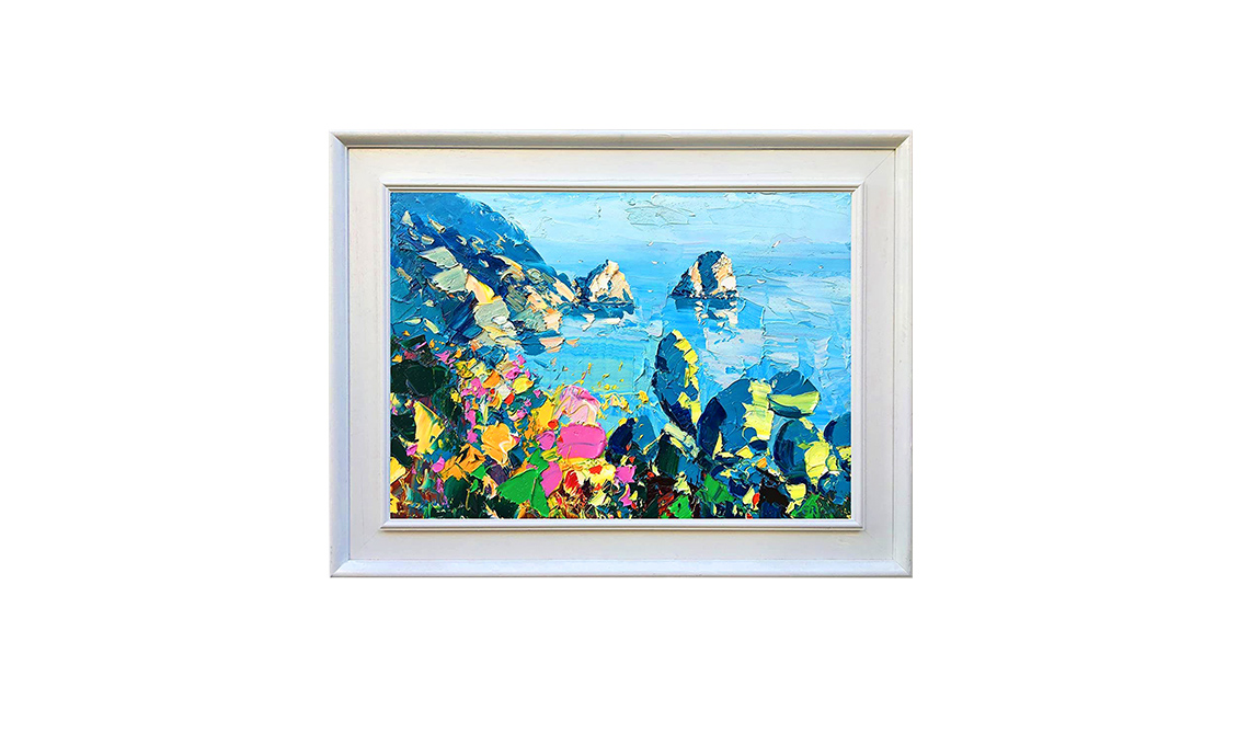 Texture e colori che rispecchiano il paesaggio circostante, ma in versione moderna con un tocco forte di blu mare.