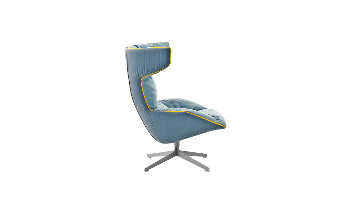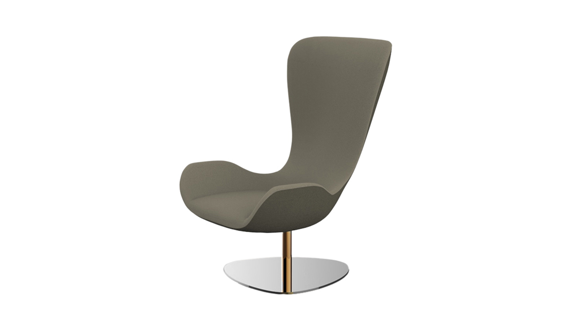 Arrotondata, in misto lana e piedi in alluminio, Ro di Jayme Hayon [Fritz Hansen, cm 80x97x113h da €2.843].