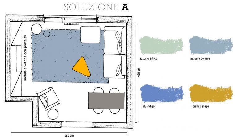 Il living di Greta è in una casa d’epoca con 4 finestre sui lati corti; dopo la ristrutturazione deve ospitare anche la cucina: come organizzarlo al meglio?
