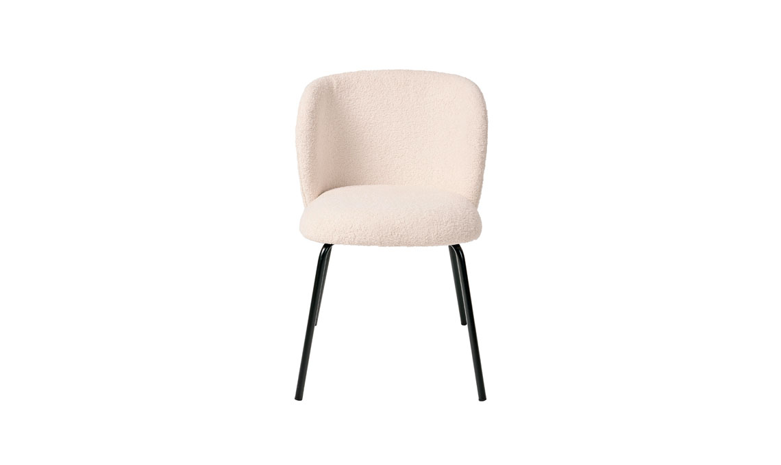 Tate ha seduta e schienale bianco su gambe in metallo nero. Il rivestimento in poliestere riciclato è eco, soft e praticissimo [Casa]