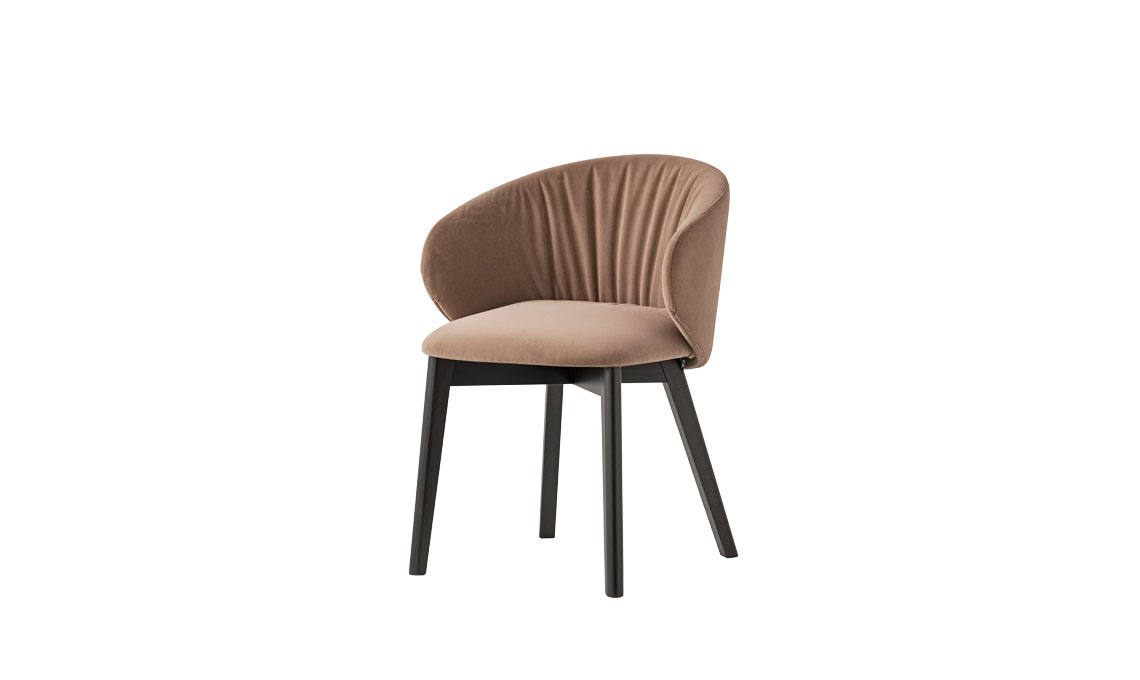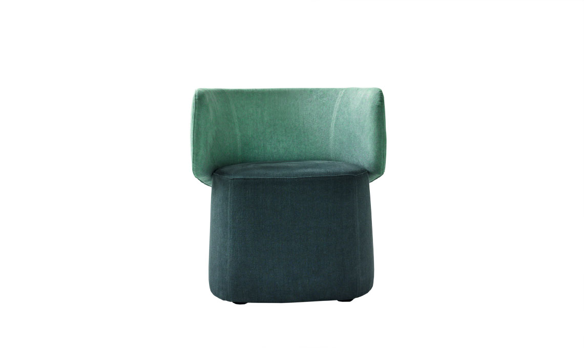 Schienale avvolgente e seduta arrotondata per Tuka Soft. Le onde di tessuto rendono soffice e piacevole al tatto lo schienale [Connubia]