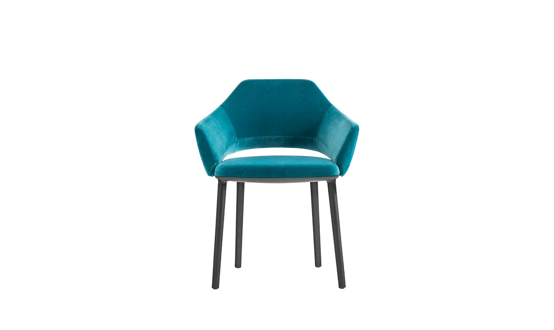 Vic ha un'ispirazione Fifties: nella forma e nel rivestimento vellutato turchese [Pedrali]
