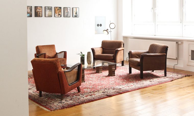 Ecco un divano 'infinito' con sedute e cuscini che al tono più vivace, alternano il bianco e il grigio. Intorno stanno alla perfezione i complementi coordinati per tinta e per linee geometriche. Compreso un tappeto stilizzato, ispirato a quelli classici, un orologio da parete a raggiera e la libreria a cubi in gradazione di colore. Il mix risulta originale e eclettico, ma armonioso!