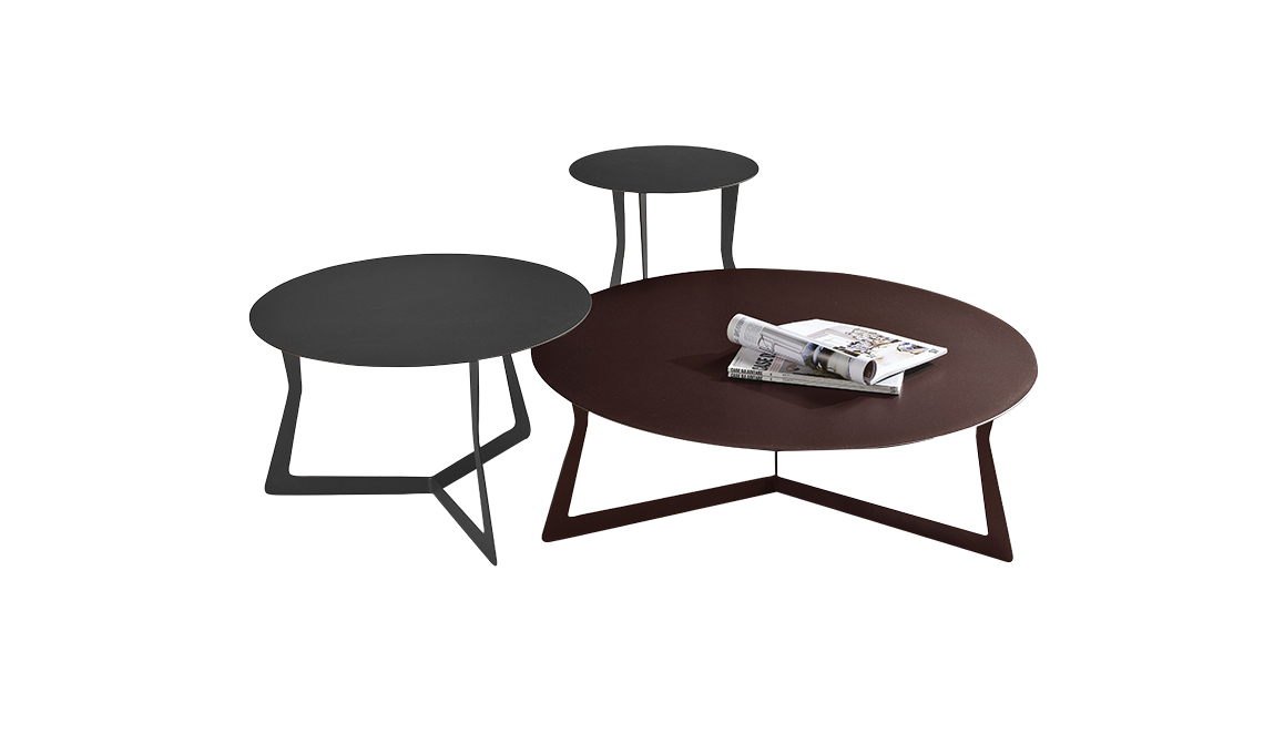 - Tavolini della collezione Planet, in metallo di spessore mm 4, verniciata a polvere, nei colori nero graphite e marrone anticato opachi di Egoitaliano.