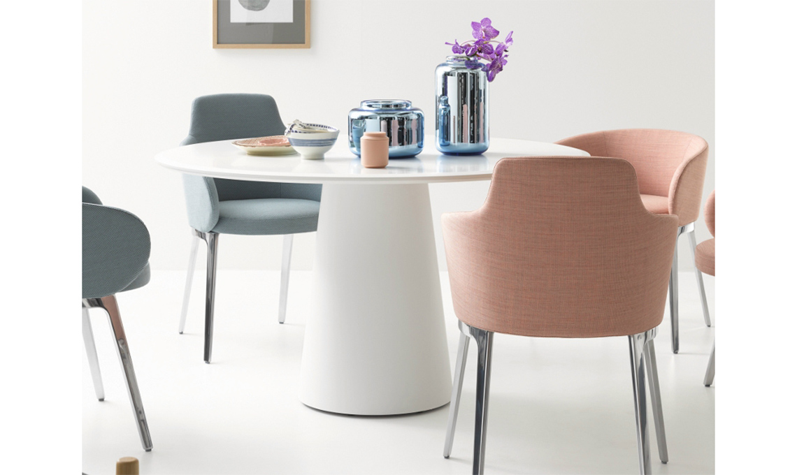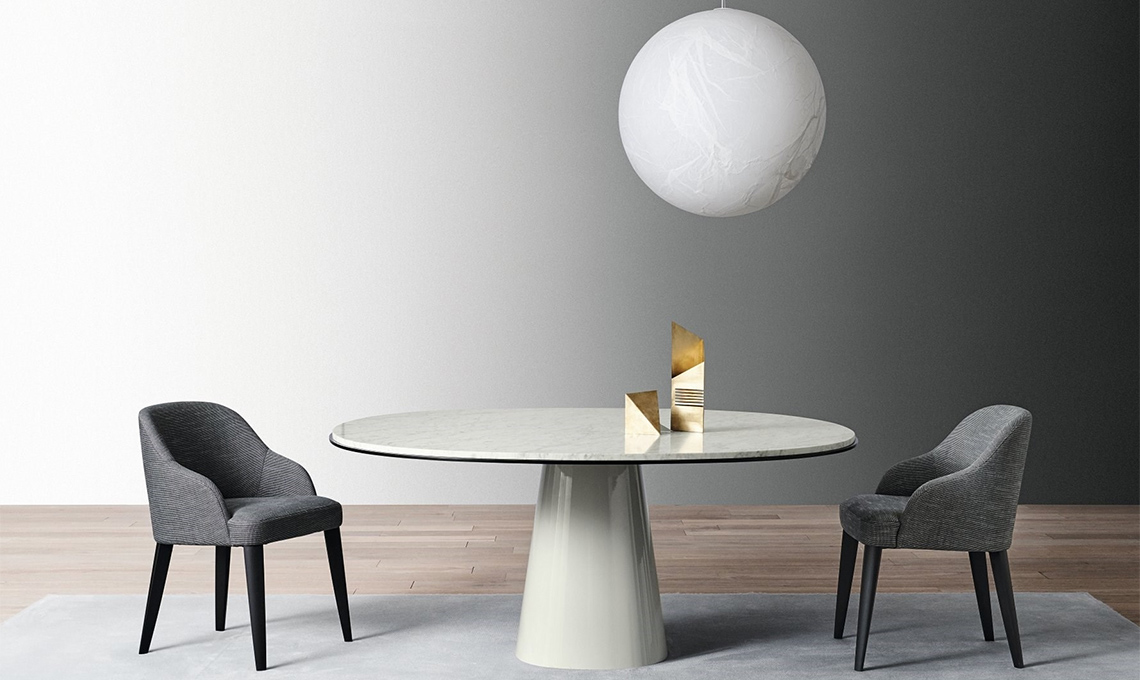 Tra le migliori soluzioni, sia funzionali che estetiche, ci sono i tavoli rotondi con basamento centrale conico, una caratteristica che agevola la possibilità di aggiungere posti a tavola con maggiore facilità.