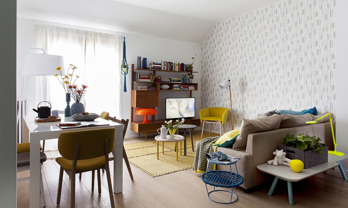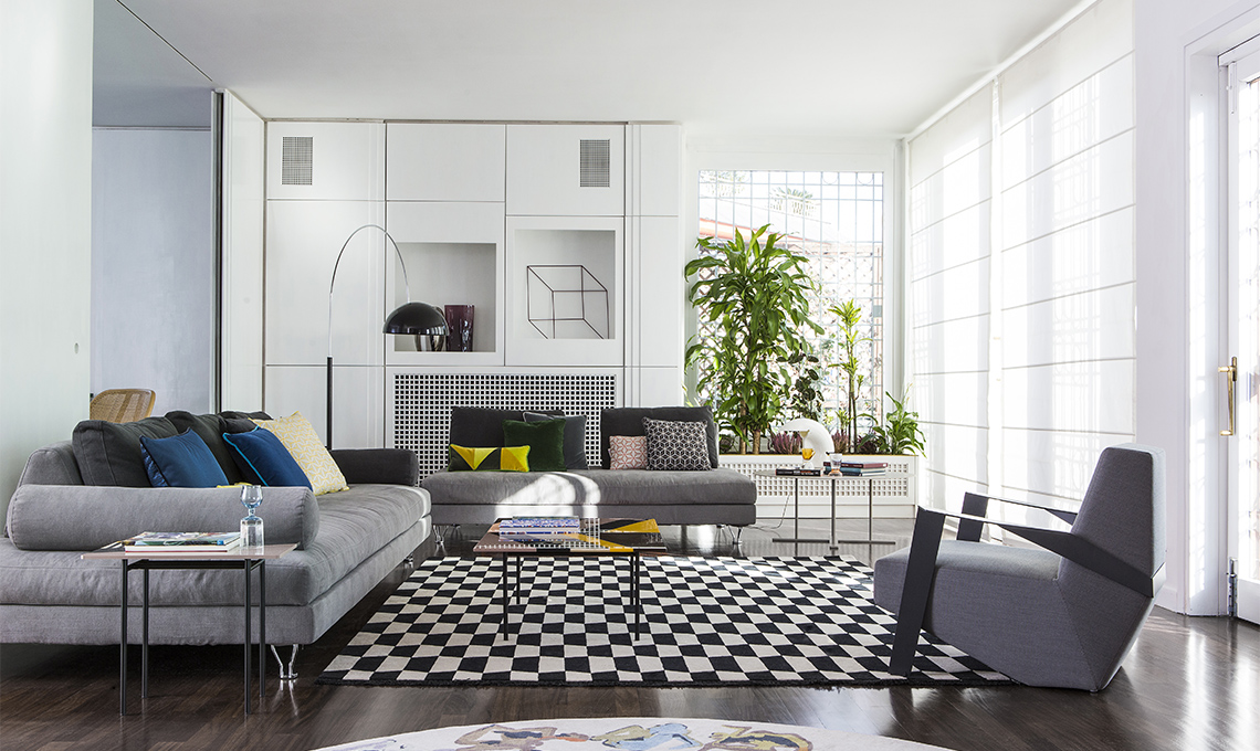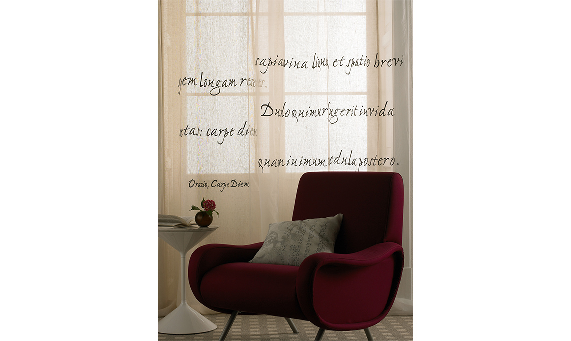 Romo vende tessuti per tende e passamanerie in varie collezioni tinta unita e con pattern grafici, anche abbinati a carte da parati.