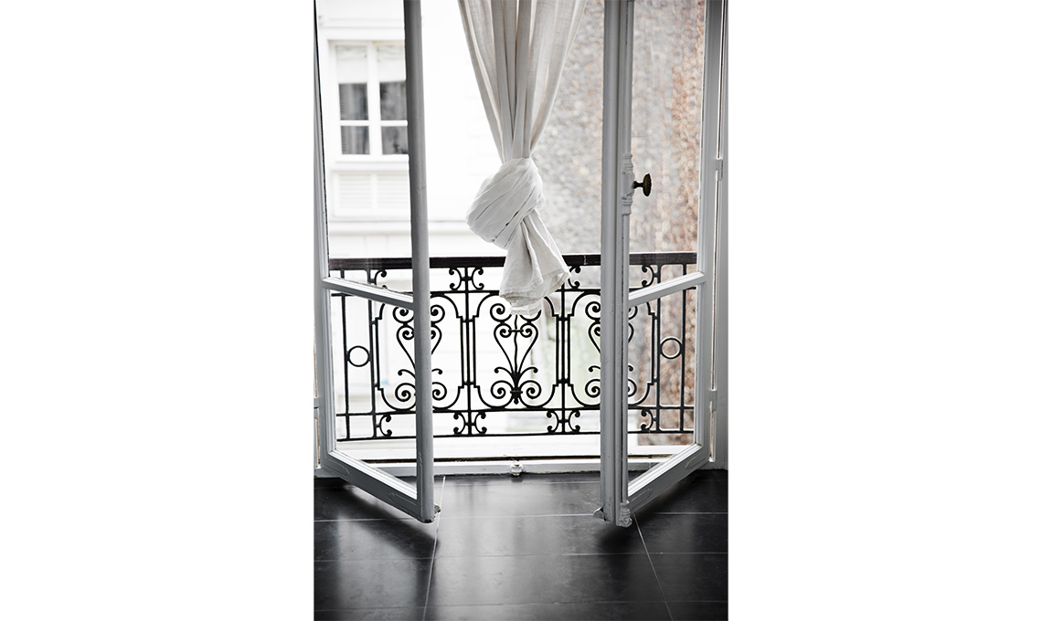La doppia tenda veste la finestra in modo classico e romantico: il velo trasparente sottostante è Anastasia di [Via Roma 60], la tenda in pura seta rosa con laccetti e nappe è di [Coincasa]. Se cerchi un doppio bastone come questo, prova Hugad di [Ikea].