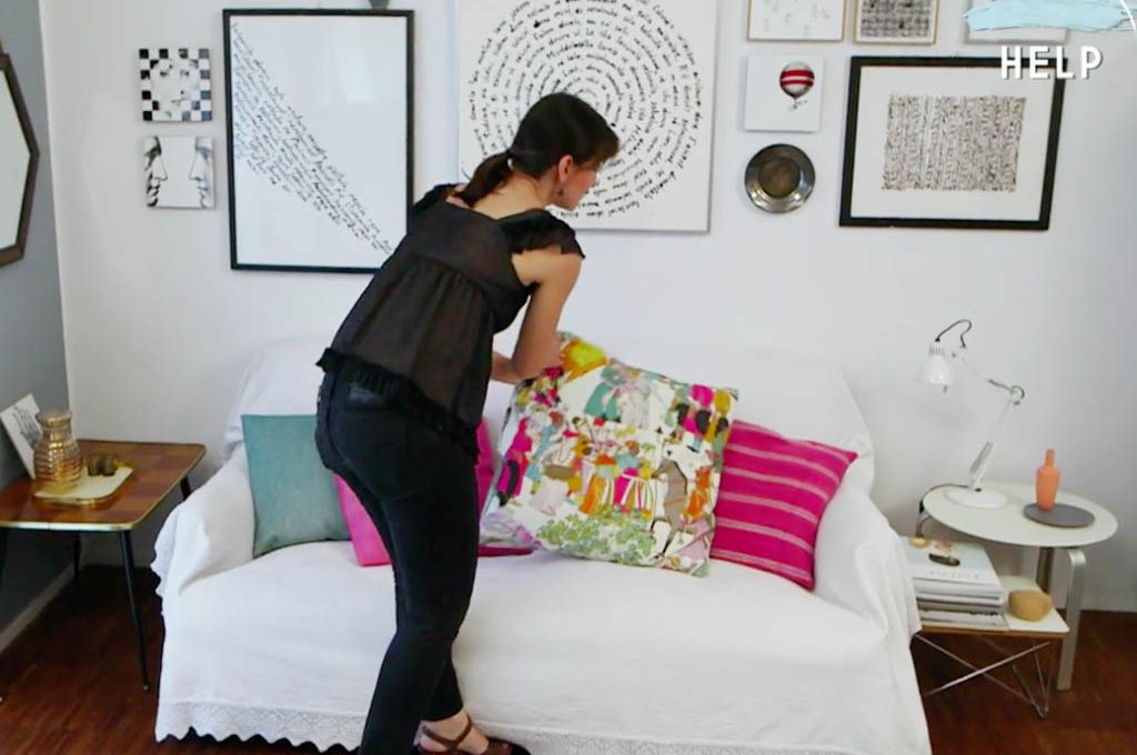 Parti dal divano: ricoprilo con un lenzuolo o un copriletto bianco.