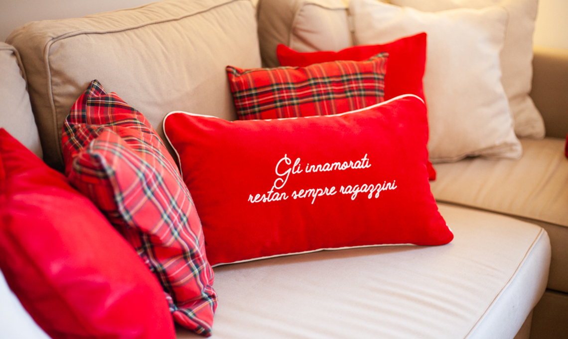 Rivoluziona il salotto partendo proprio dai cuscini. Scegli delle fodere rosse con motivi e decorazioni diversi.