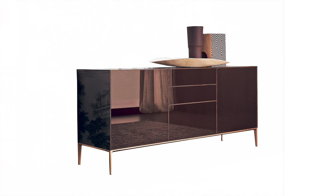 Madia Aurora con fianchi telaio alluminio e vetri cannettati [Febal Casa, cm 100x50x155h].