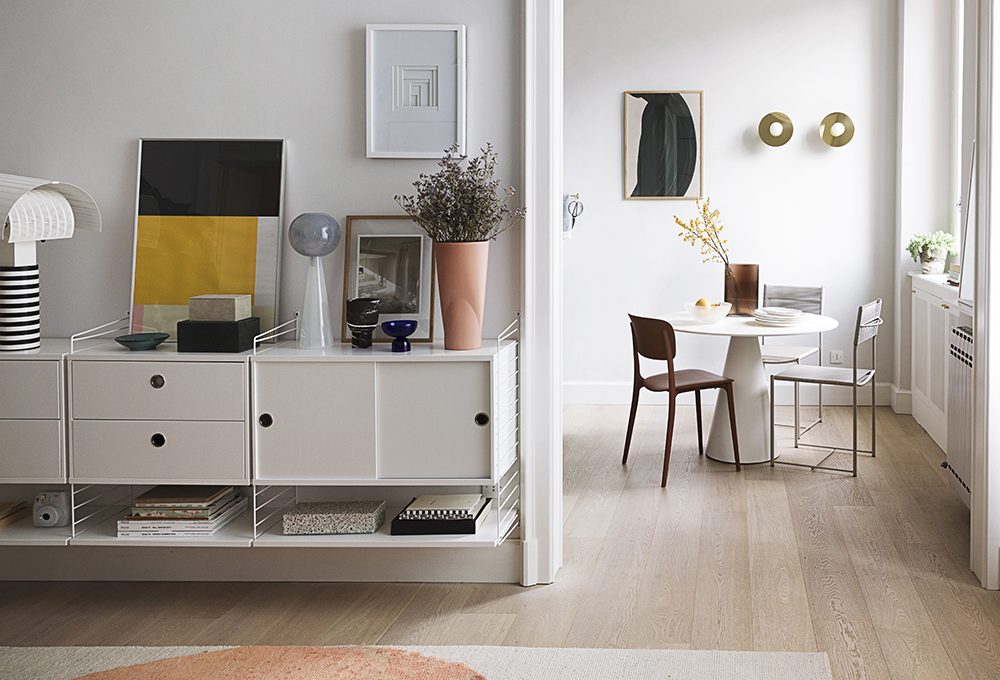 Progettato per resistere all’uso quotidiano: Docksta, in laminato, acciaio e plastica ABS [Ikea, ø cm 103x75h €140].