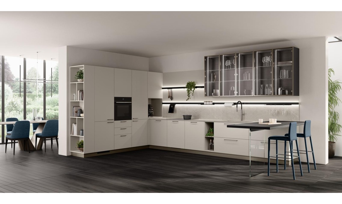 opaco Grigio Chiaro e maniglie in Acciaio finitura satinata;