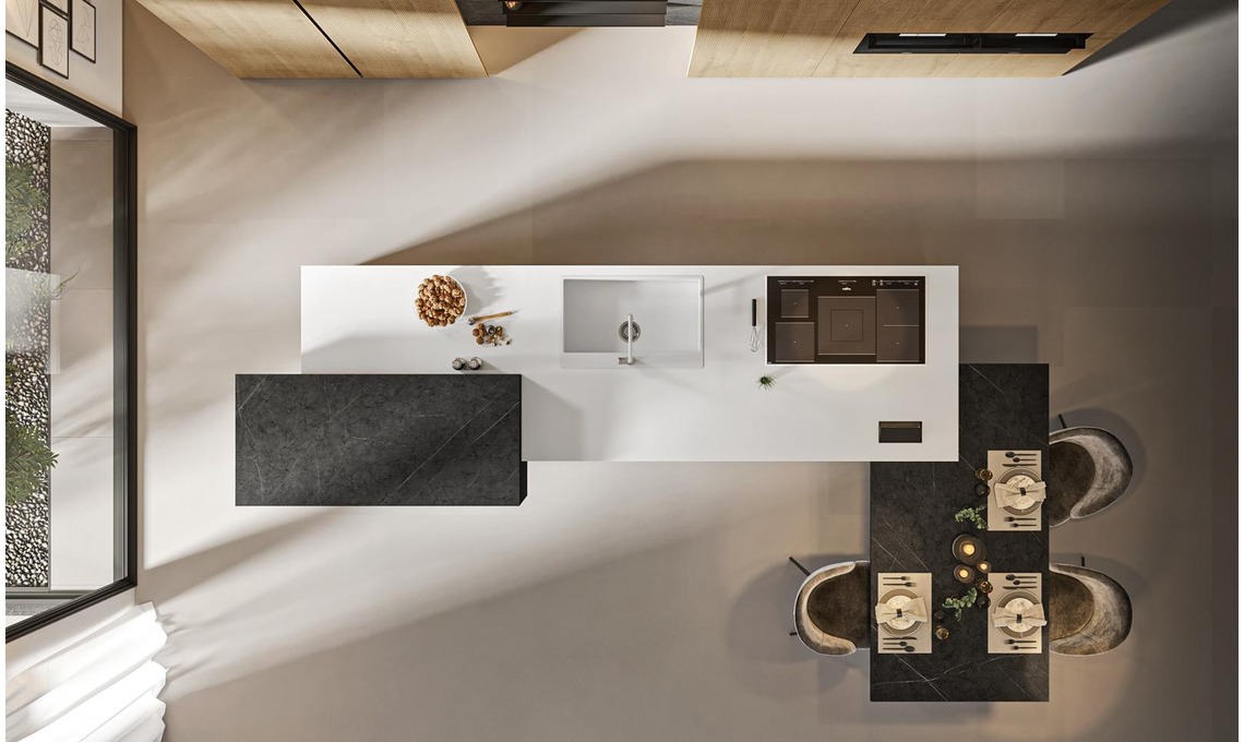 IL LAVELLO L’ideale è integrato nel top, nello stesso materiale: grès oppure un materiale tecnico come il Dekton e il Solid Surface, facili da pulire. La lavastoviglie va a non più di 40 cm di distanza.