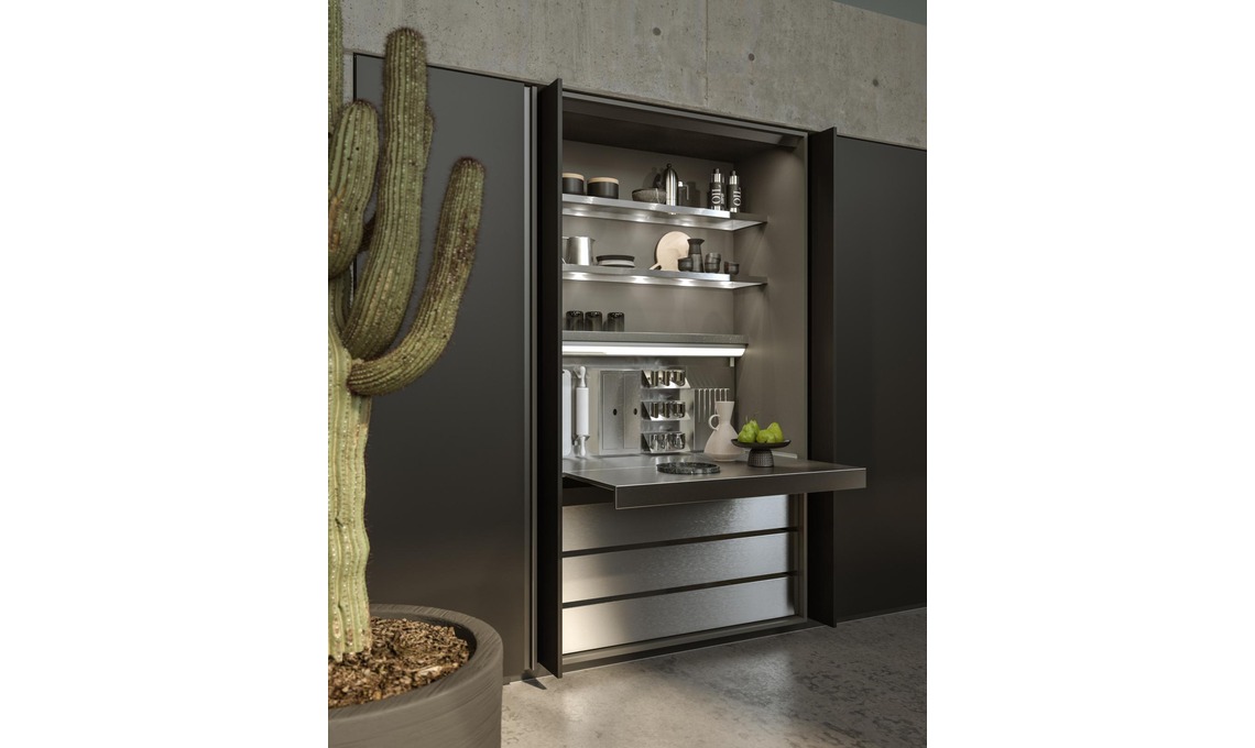 NELL’ANGOLO Per la base scegli dei ripiani estraibili e sul top puoi tenere un vano aperto per la macchina per il caffè pronta all’uso.