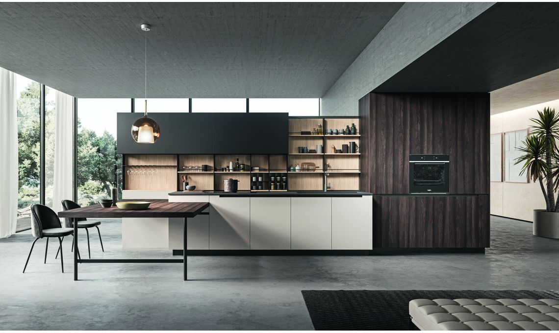 ZONA COTTURA Se non ami le cappe a vista o preferisci pensili solo contenitivi ci sono i piani che hanno la cappa integrata: una soluzione molto efficiente e salvaspazio; oppure ci sono quelle incassate nel top.