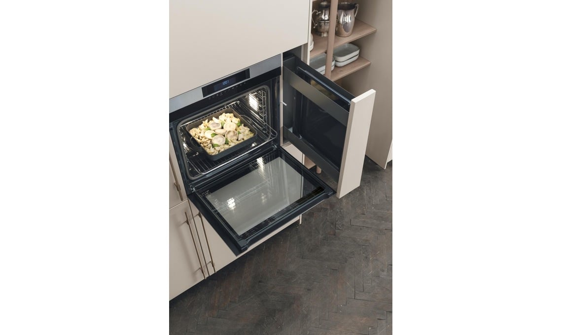 Mettilo ad almeno 45 cm di altezza, così lo usi senza piegarti; se inserito in una colonna larga 75 cm ci sta anche l’estraibile per tenere le teglie.