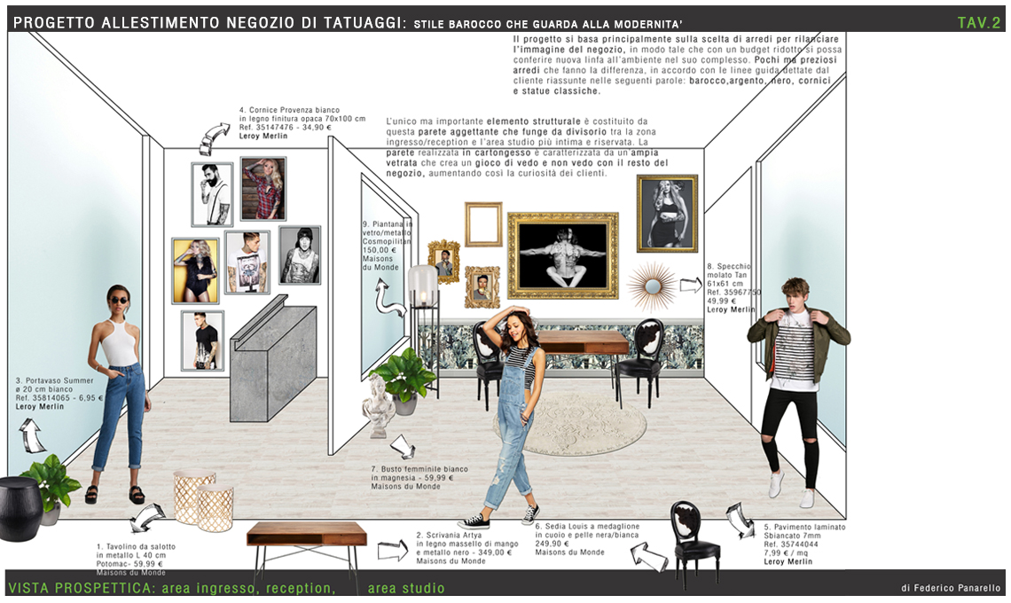 Sempre più si parla di vivere un’esperienza, che diventa quasi più importante della funzione stessa svolta dai negozi. La nuova frontiera del tattoo experience, infatti, segue proprio questo filone. Cornici barocche dalle finiture dorate adornano specchi di molteplici dimensioni, mentre poltrone in stile vittoriano dai tessuti variegati ed originali rendono le sale d’attesa più confortevoli.