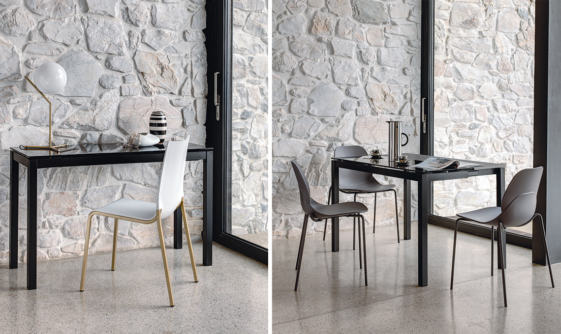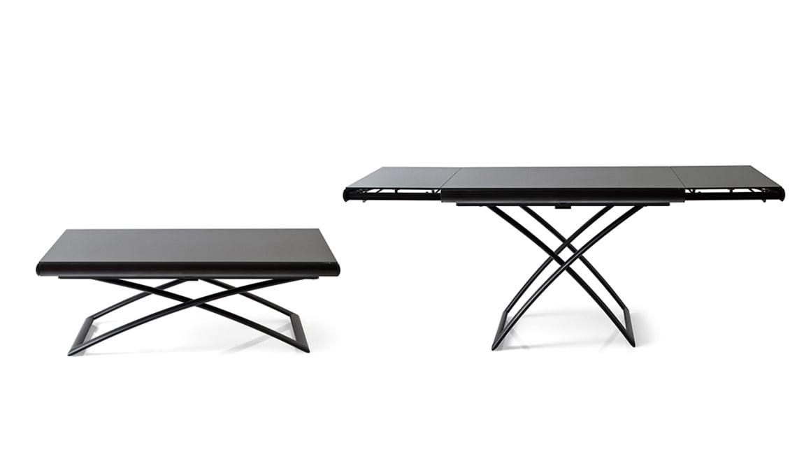 Il tavolino che diventa tavolo, Calligaris Dakota è regolabile su 7 altezze diverse e allungabile, per ottenere un piano di appoggio da cm 70x 190 cm, per ospitare fino a 8 persone a pranzo o cena [Calligaris, cm 106/186,5x 71,5x44/75h €1.238