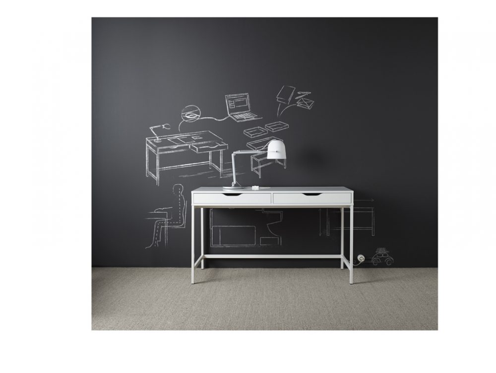 Scrivania Journal dalle linee minimali e sottili in legno e acciaio. Disponibile in tre finiture, bianca, grigia e nera [Normann Copenhagen, cm h74x130x65 €650].