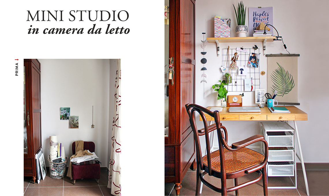 Sognavo da tempo uno spazio tutto mio per scrivere sul blog, raccogliere libri e accessori che mi ispirano. L’unico spazio disponibile era un angolino luminoso in camera da letto, accanto all’armadio: dopo aver ospitato la culla dei bambini era rimasto spoglio e inutilizzato. Mi sono quindi messa all’opera per trasformarlo in una mini zona studio creativa e funzionale.