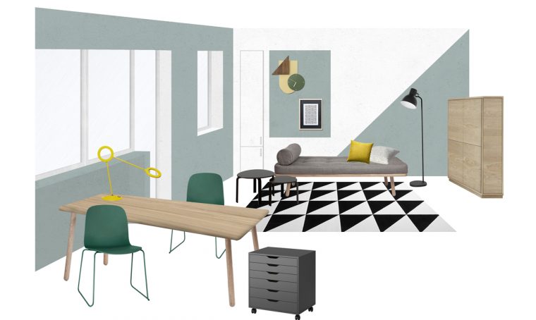 Se decidi di lavorare in salotto, puoi fare una divisione ulteriore, e prevedere una libreria che divida il tuo angolo studio dall’angolo living.