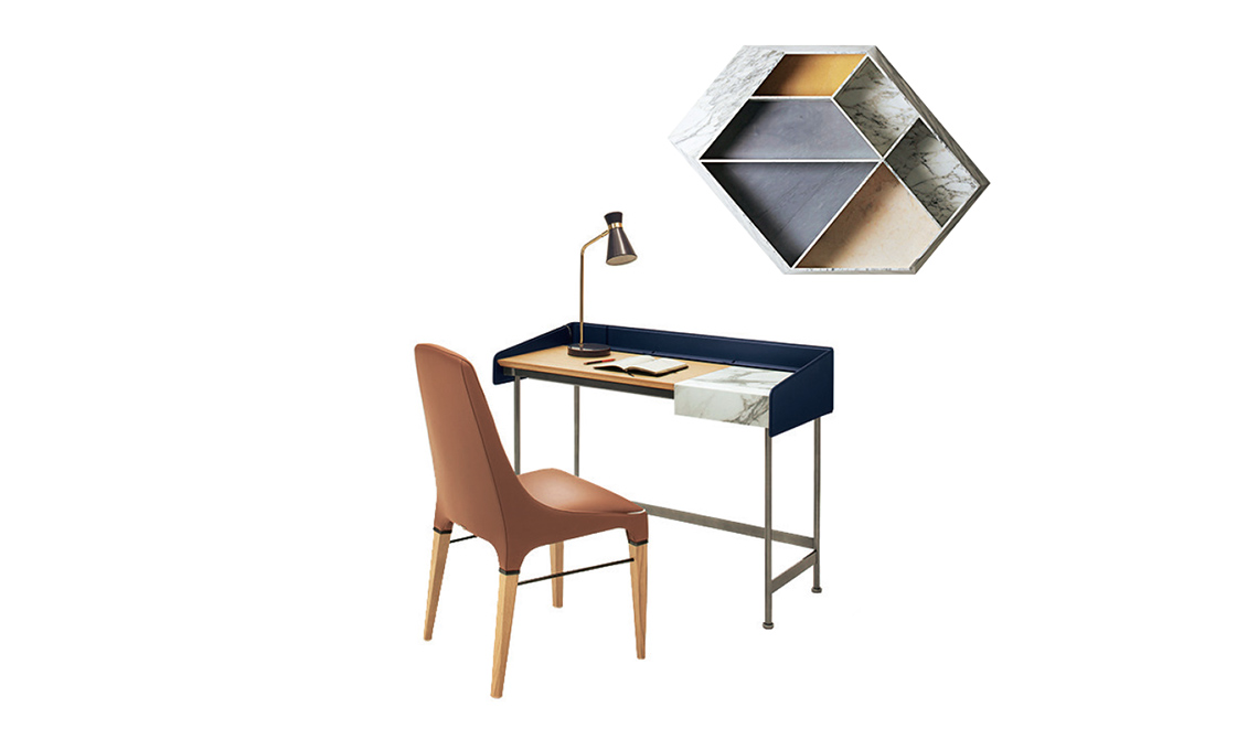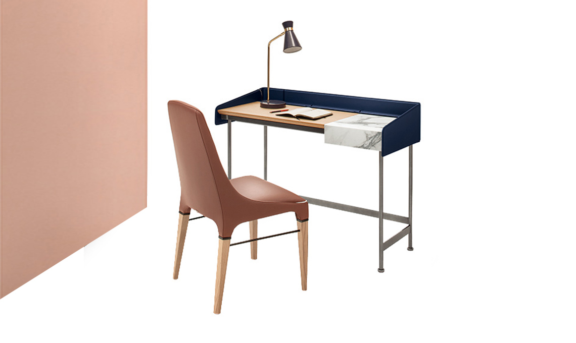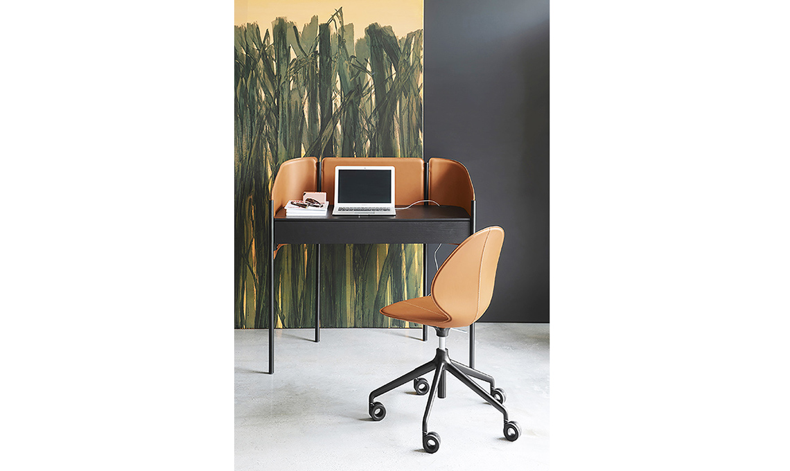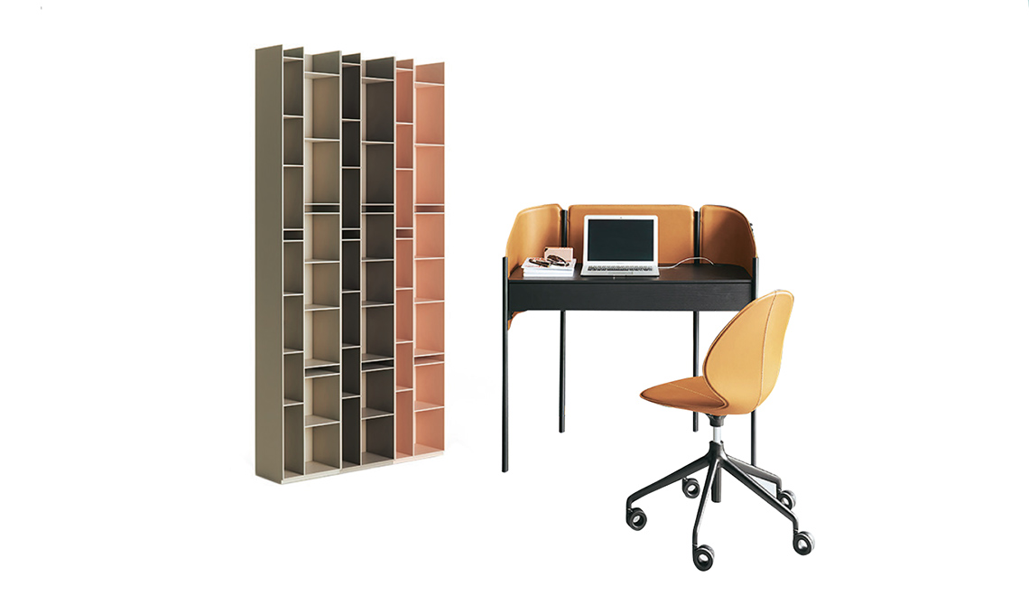 Per creare una postazione studio-lavoro in salotto bastano un desk di design a 73-75 cm di altezza e profondo 50-60 cm, una seduta ergonomica e un sistema di ripiani profondi 25-35 cm. La luce? Deve provenire dal lato opposto a quello della mano con cui si usa il pc o si scrive.