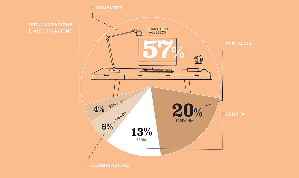 - Mai risparmiare sulle lampadine: investi su bulbi a led dimmerabili con temperatura di colore tendente al neutro (da 3.500 a 4.500 gradi Kelvin, indicati sulla confezione): costano circa il 20-50% in più, ma se lavori per molte ore affaticano meno gli occhi.