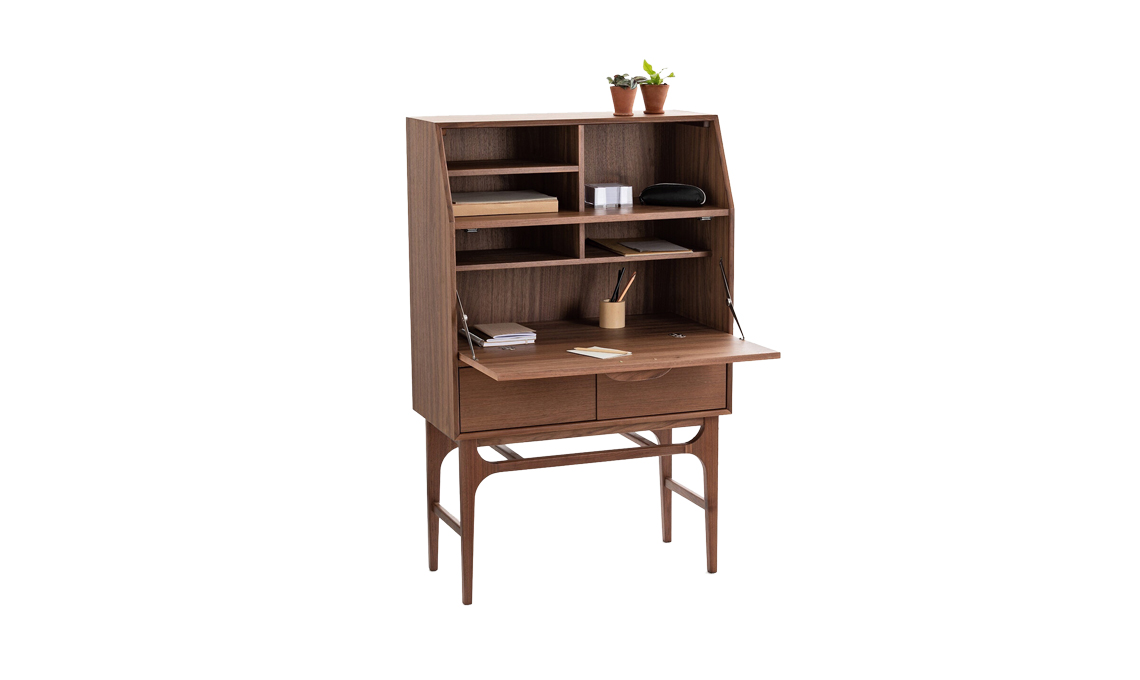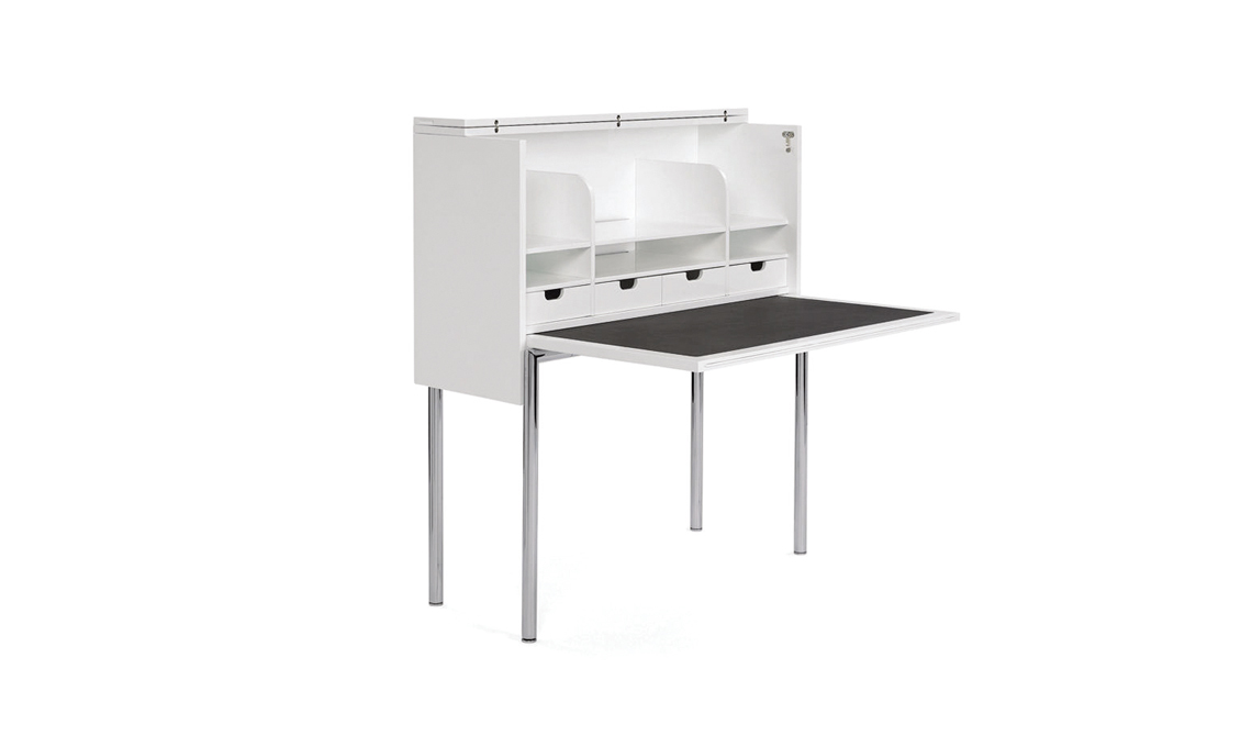 Se i designer reinterpretano la scrivania ‘a ribalta’ tipica degli uffici di fine ’800... ecco che la trasformano in un vero must have. Intrigante, con il suo gioco apri&chiudi, ideale nei piccoli spazi, minimal, artistica, organizzata, predisposta per il laptop. E con tanti cassettini per celare i segreti.