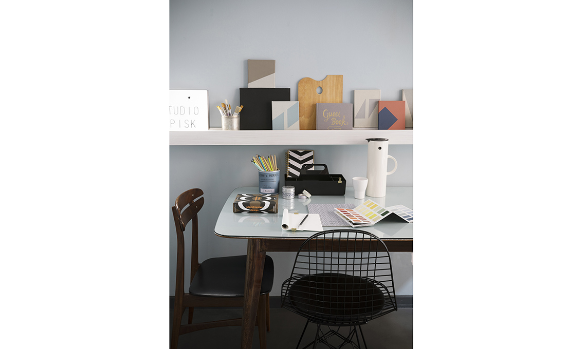 «Come altri pezzi scelti per il mio studio – racconta la nostra stylist Vanessa Pisk [» vanessapisk.com] – tavolo e sedie sono vintage. Il progetto, infatti, era di arredare lo spazio dedicato al lavoro con lo stesso mood di casa mia». Nel trasformare un vecchio negozio nel proprio studio, Vanessa ha voluto che l’ambiente fosse accogliente e ‘caldo’ come un salotto. Ecco perché ha aggiunto tanti piccoli dettagli che ‘fanno casa’ e rispecchiano in pieno il suo gusto personale.