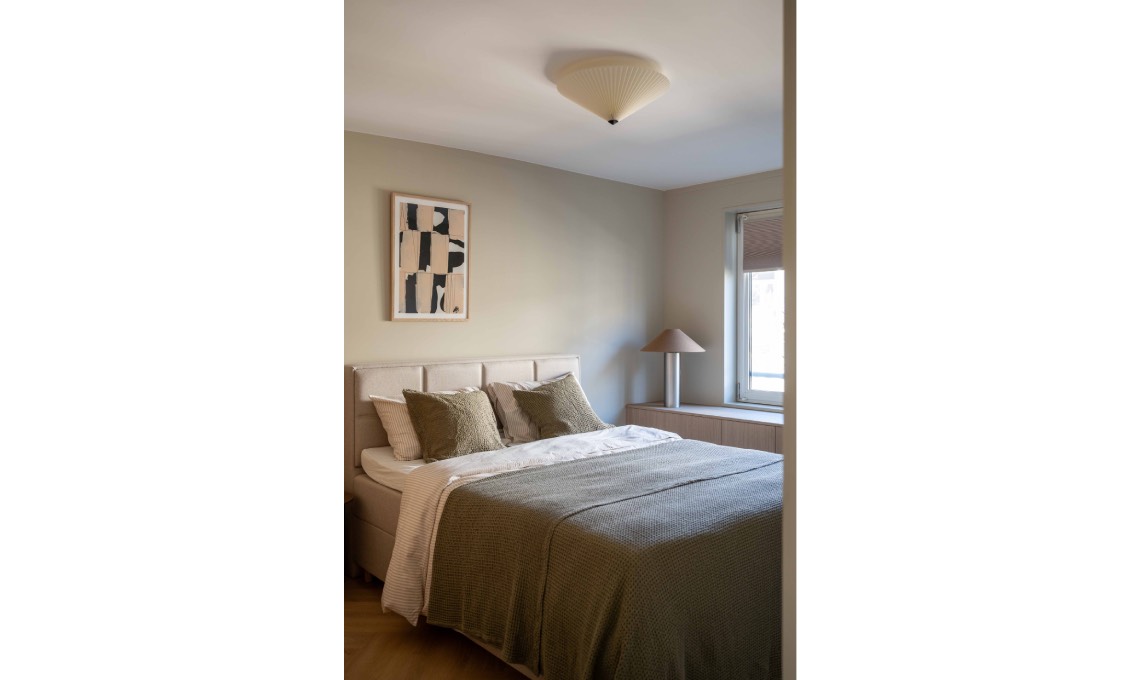 Nella camera da letto padronale, infine, gli spazi sono stati ottimizzati posizionando il letto al centro della stanza, e creando simmetria tra un armadio su misura posizionato sul lato sinistro, e una lunga cassettiera che funge anche da scrivania/home office, posizionata sotto la finestra sul lato destro. «Anche qui, il mood è semplice e naturale, con pareti beige e toni del verde, che richiamano la natura e trasmettono calma» conclude Mariarosaria.