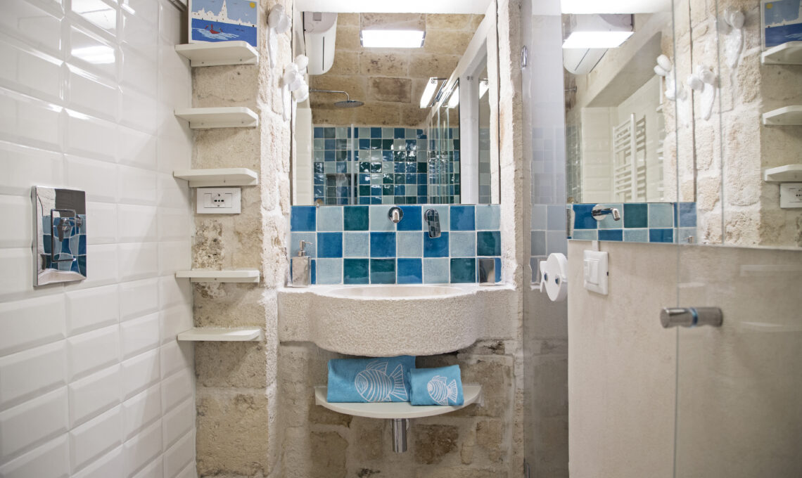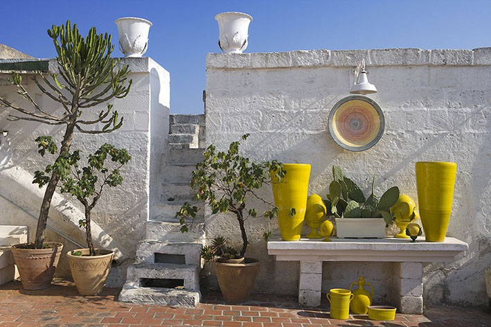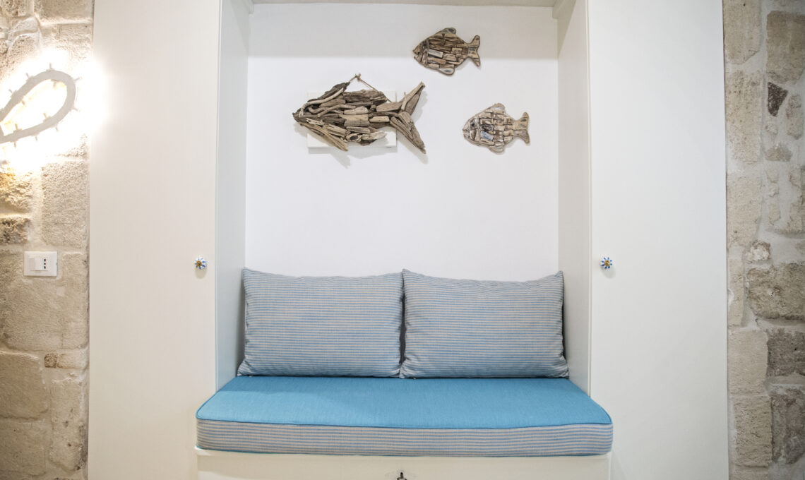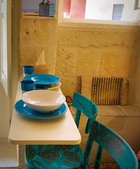 Il lungo e attento lavoro di ristrutturazione e di recupero compiuto con il supporto di un amico designer francese che da anni vive in Italia, ha voluto conservare l’aspetto autentico delle case pugliesi con un tocco di modernità. Un connubio tra terra e mare, tra color sabbia e turchese.