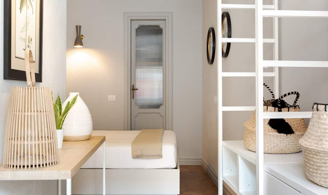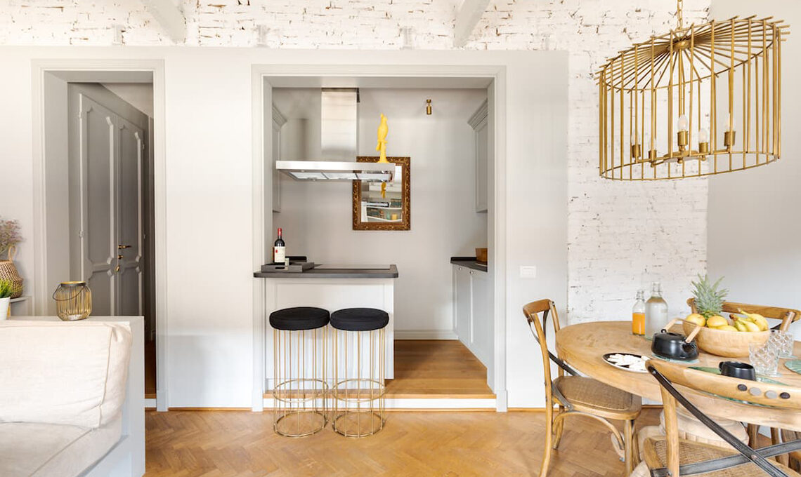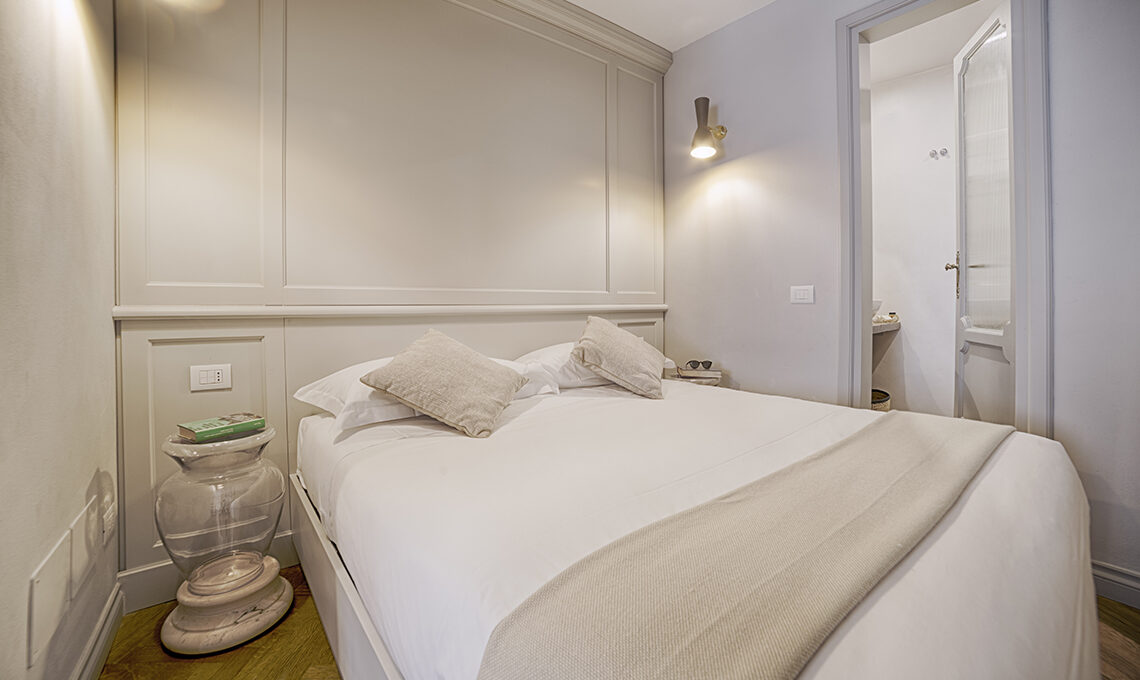 L'appartamento ha una divisione particolare, Valentina ci racconta come la disposizione sia evidentemente dettata dalla divisione precedente di un appartamento più grande: "Entrando ci si trovava a percorrere un cupo corridoio dal quale si accedeva, attraverso due porte vetrate, al salotto/sala da pranzo caratterizzato dalla vista mozzafiato su Piazza Pitti. Dal salotto poi si entrava in una camera. L’unico bagno della casa si trovava nel corridoio, quindi per raggiungerlo dalla camera bisognava attraversare il salotto. Alla fine di questo lungo corridoio la cucina. Le opzioni erano due: o rinnovare l’appartamento lasciando gli spazi così come erano, oppure cercare di aumentarne il valore investendo di più per fare cambiamenti importanti. Abbiamo deciso di fare una ristrutturazione radicale con l'idea poi di recuperare qualcosa mettendo a disposizione l'appartamento per affitti brevi".
