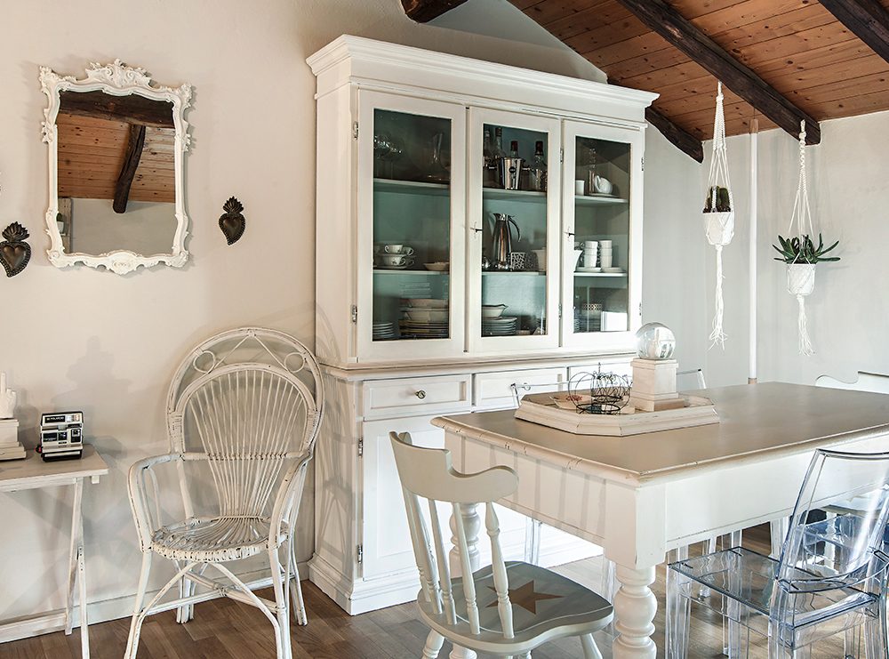 Tra gli arredi, due bellissime poltrone di recupero degli Anni ’50 che, restaurate e ritappezzate in bianco, sono diventate le vere protagoniste del soggiorno!