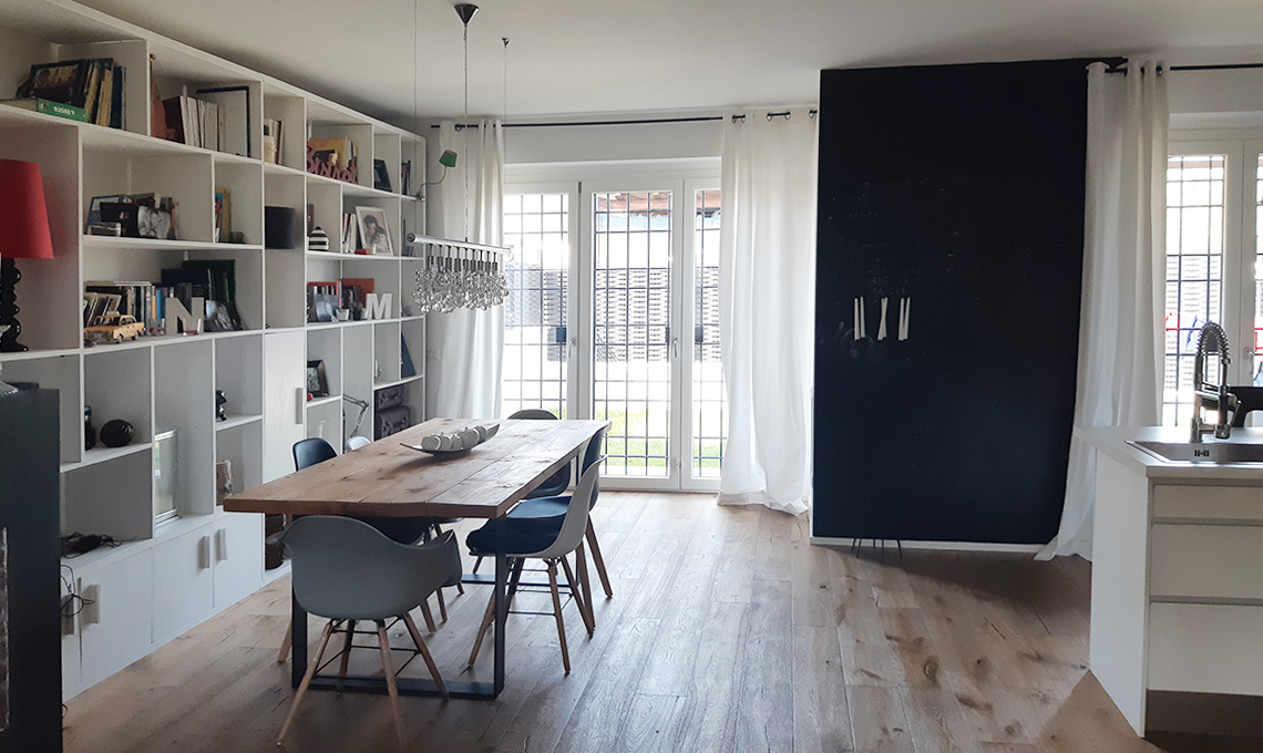 La casa, acquistata ancora in fase di costruzione, ha permesso loro di disegnare spazi e finiture. "Abbiamo realizzato il progetto, diretto i lavori e curato l’arredamento restaurando oggetti anche comprati nei mercatini e CasaFacile è stata una fonte d'ispirazione!".