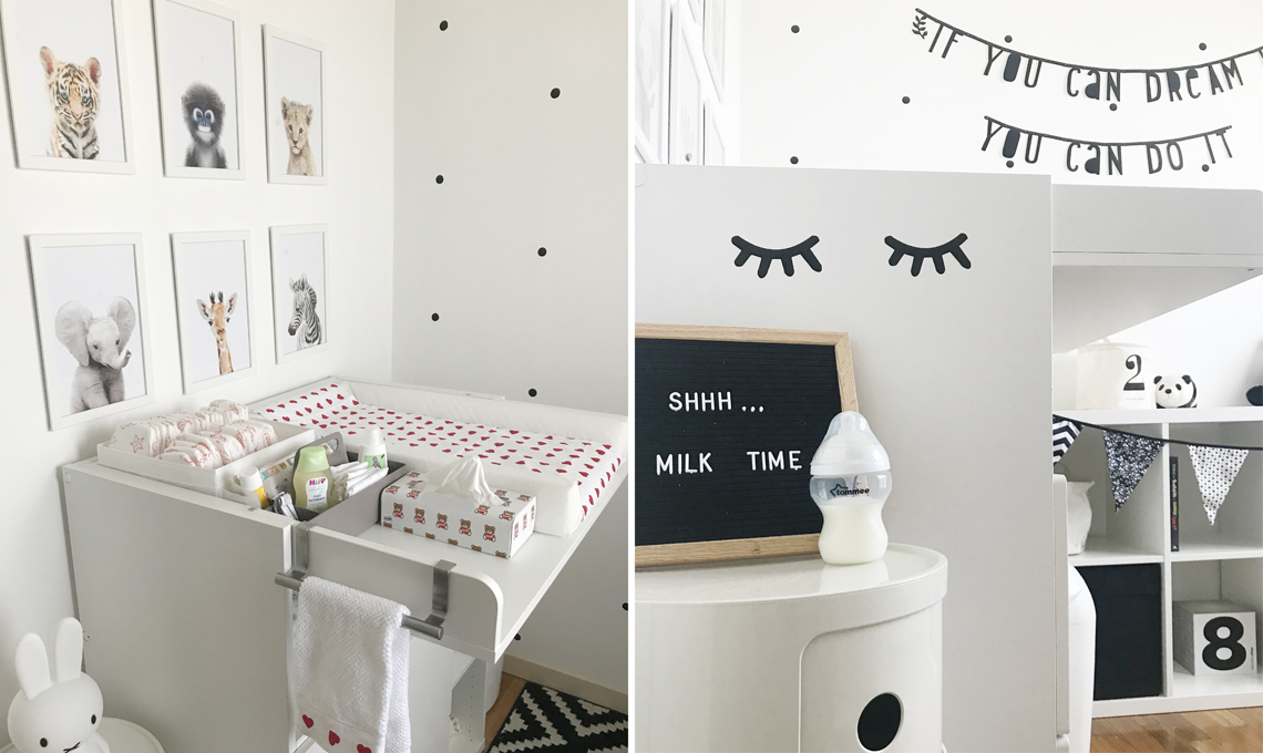 Nella stanza si trova anche il fasciatoio che si trasforma in scrivania [Ikea].