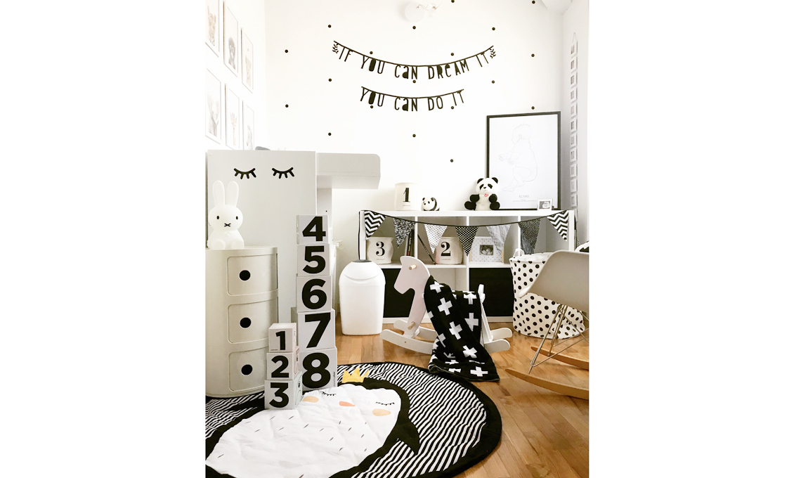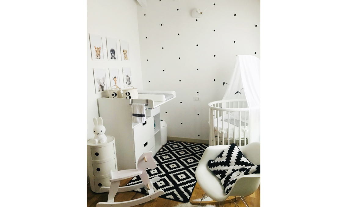Per questo per arredare la cameretta di sua figlia Azzurra ha preso spunto dallo stile nordico, utilizzando come colori predominanti il bianco e il nero.
