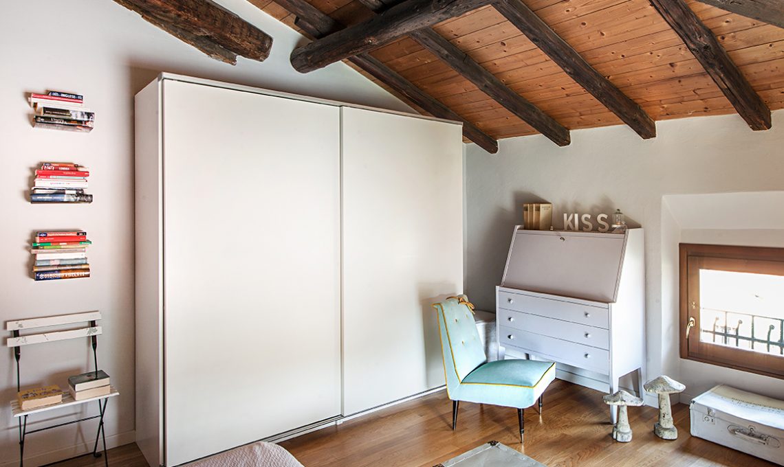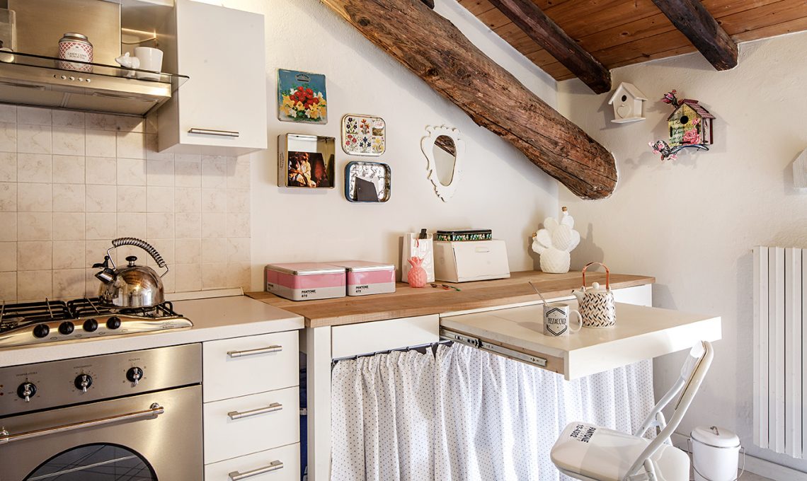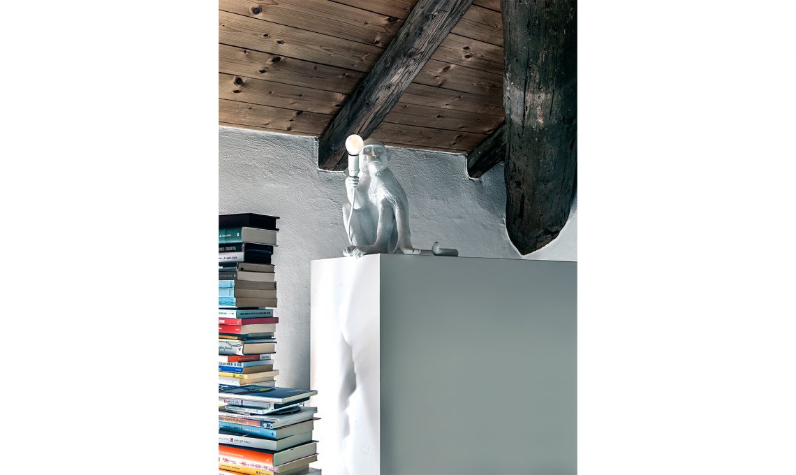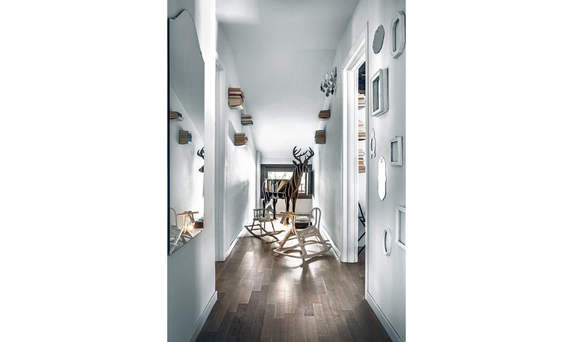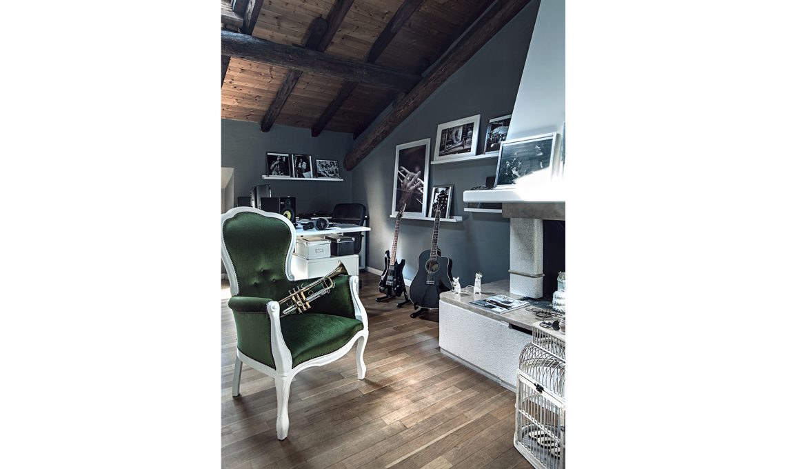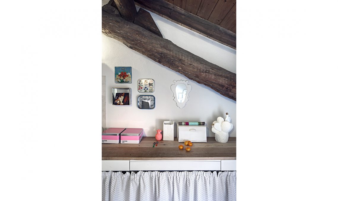 Pistacchio & Caffè, in cui offre anche consulenze di progettazione, in particolare mirate alla scelta e all'uso dei colori. Dice di amare tutte le sfumature, ma per casa sua ha scelto il "total white" «Perché – dice – lo trovo più rilassante e mi aiuta a recuperare uno sguardo 'neutro' per il lavoro del giorno dopo». Bianco come necessità, quindi. E anche come scelta stilistica: il candore, qui, è una base su cui lavorare aggiungendo pezzi di origini e stili diversi, dalla poltrona rococò alla lampada design di Seletti. Il bianco stesso assume forme diverse: nel tavolo provenzale e nella credenza in sala da pranzo, nel midollino della poltroncina in&outdoor, nelle cornice moderne e barocche...