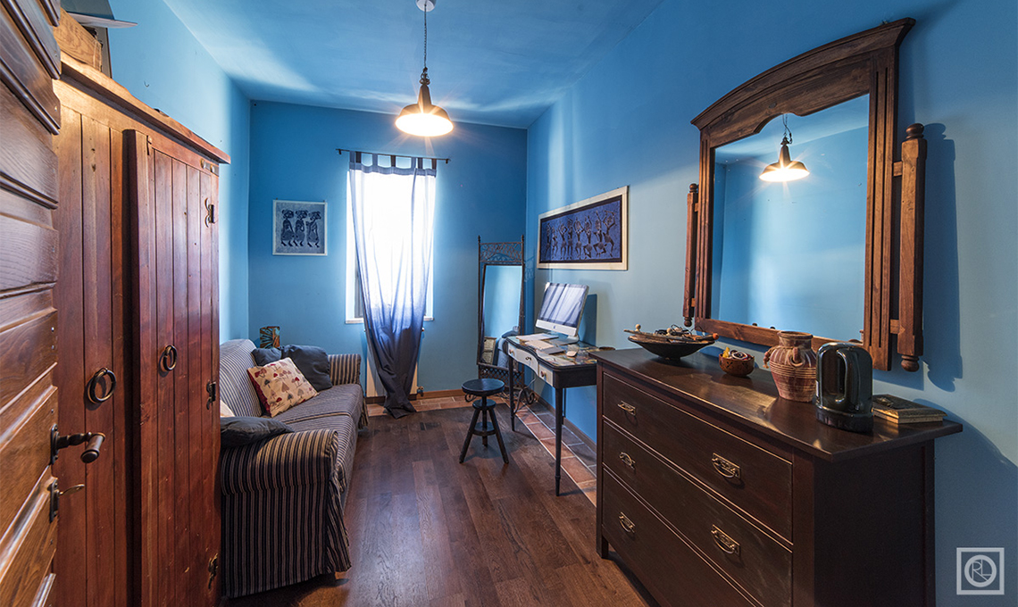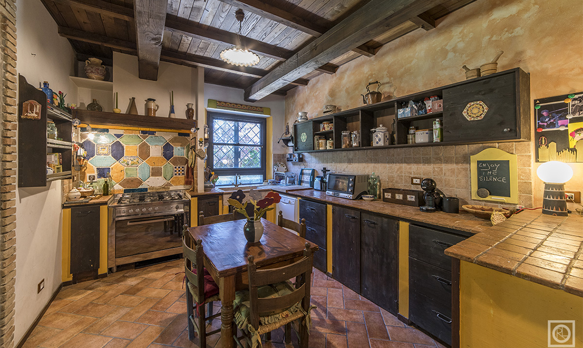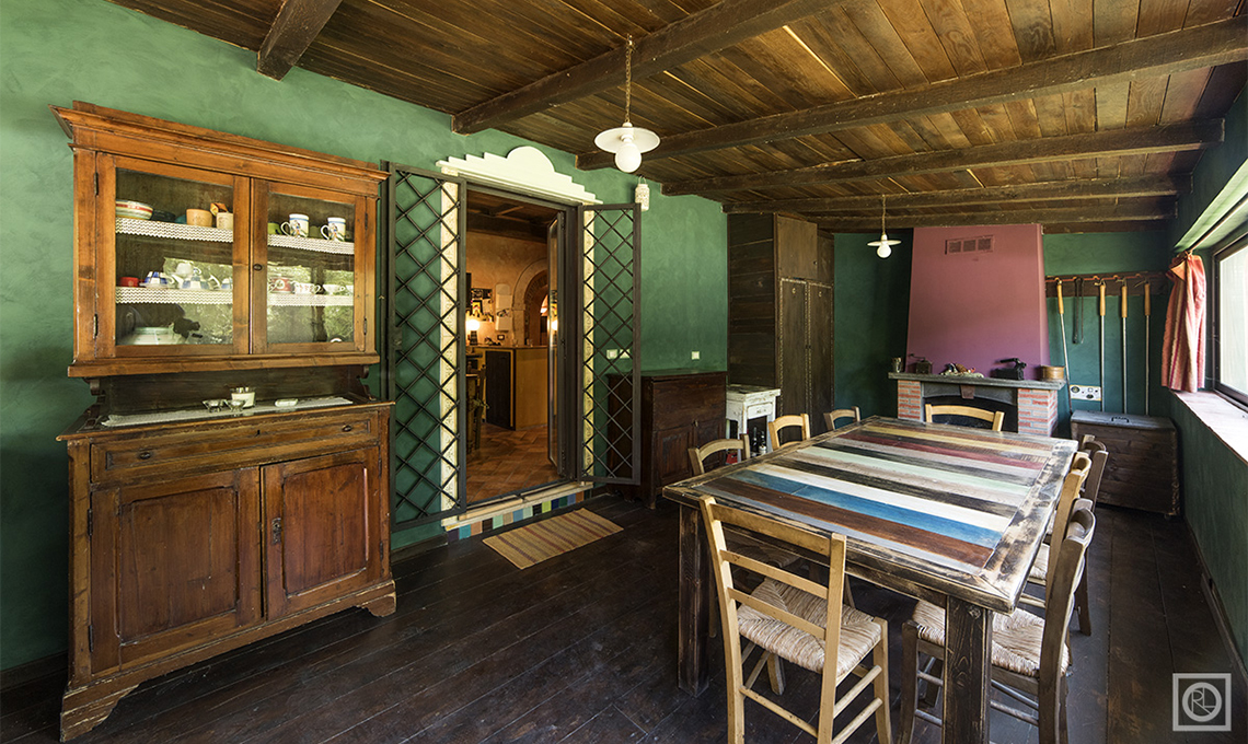 Per dare carattere agli interni, si è scelto di sottolineare ogni ambiente con un colore intenso, steso sui muri con pitture materiche e dall'aspetto 'grezzo'. L'effetto finale è di uno stile country in salsa italiana, con gusto per i dettagli e per i mobili in legno che conservano il sapore della tradizione.