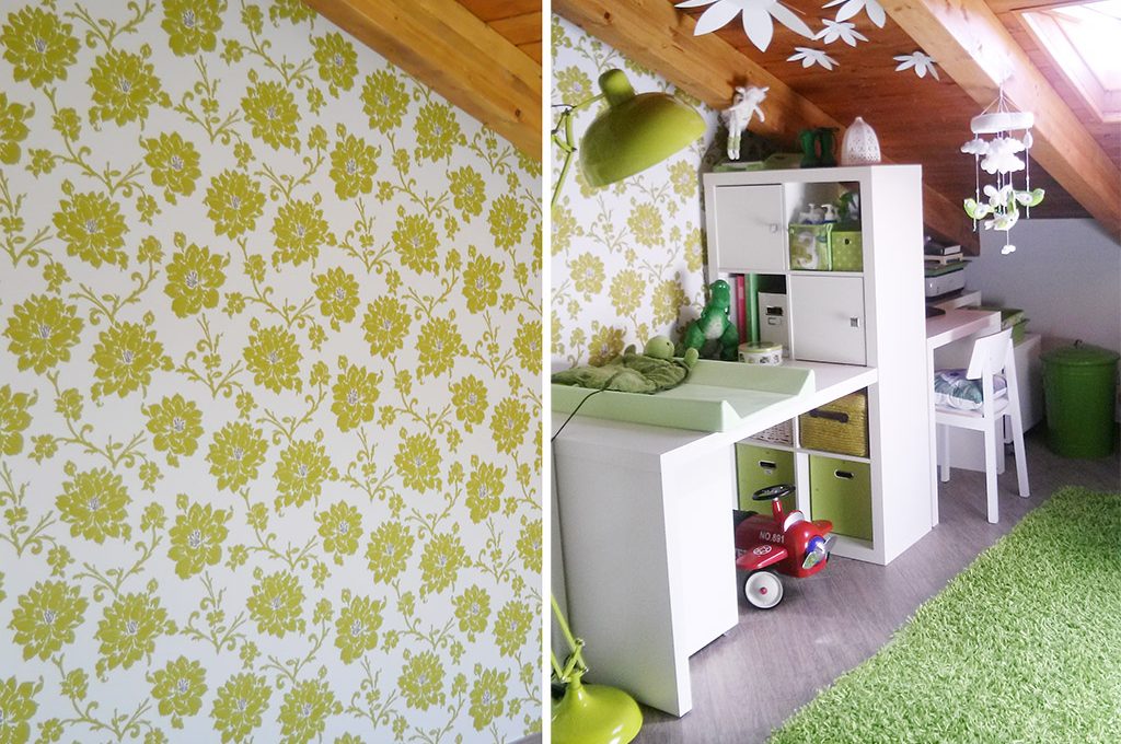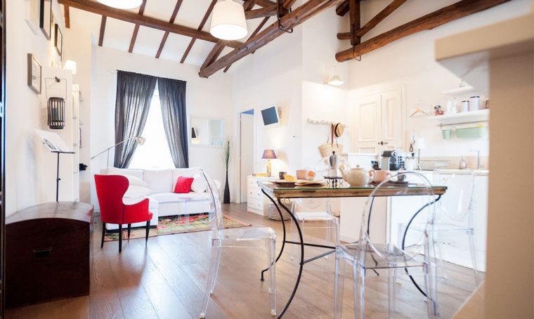 rosso per la cucina, verde per il bagno e la cameretta, tocchi di viola per le altre zone.